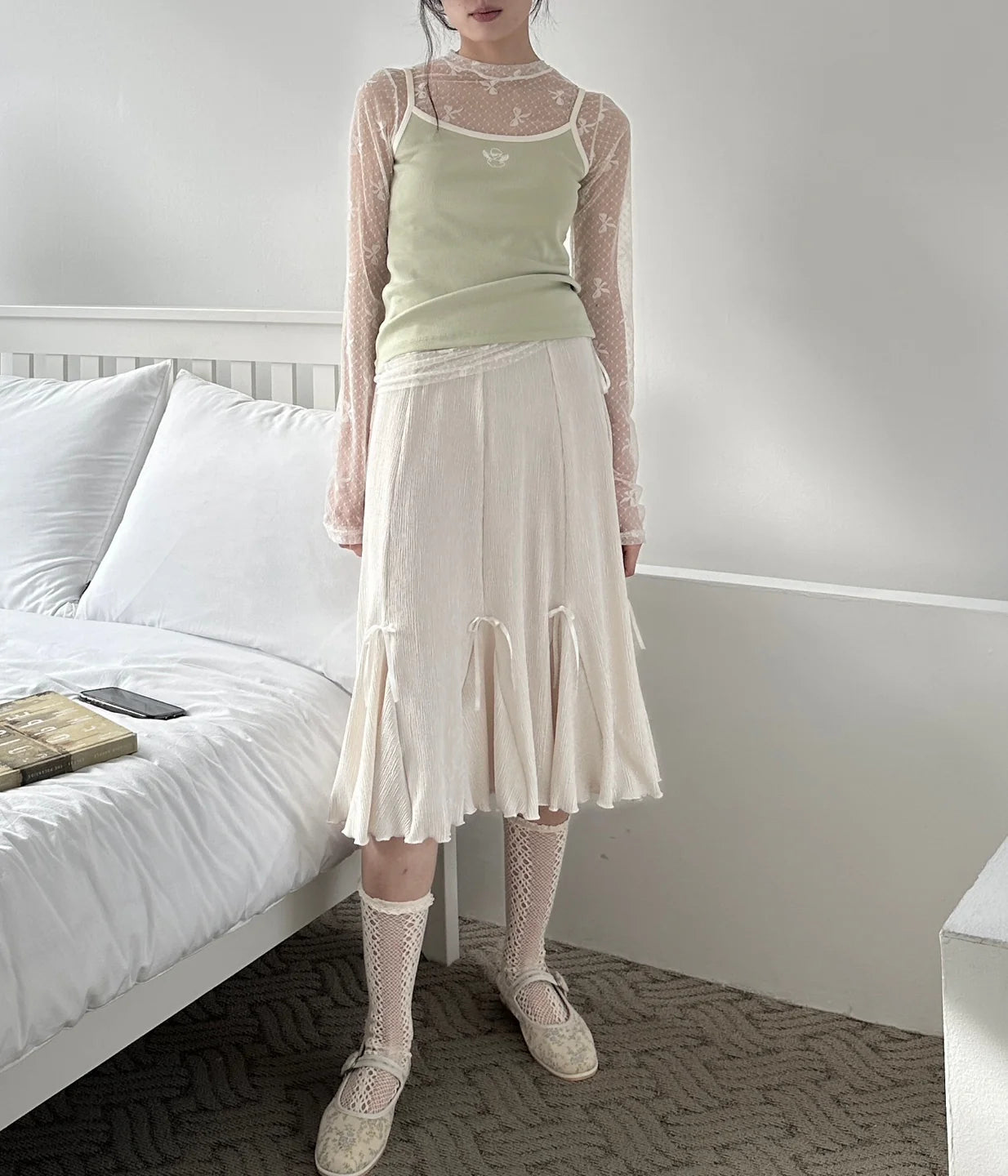Ribbed Bell Sleeve Ribbon Detail Set