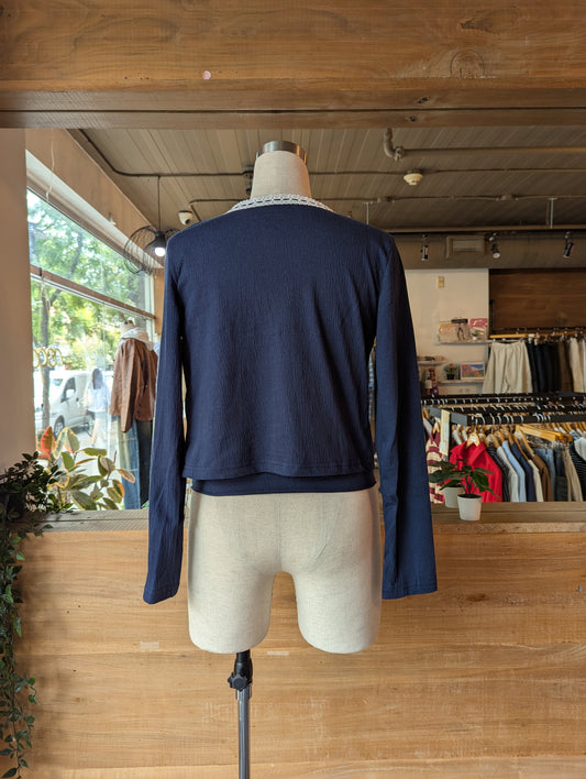 Ruffle Cardigan with Built in Collar Shirt