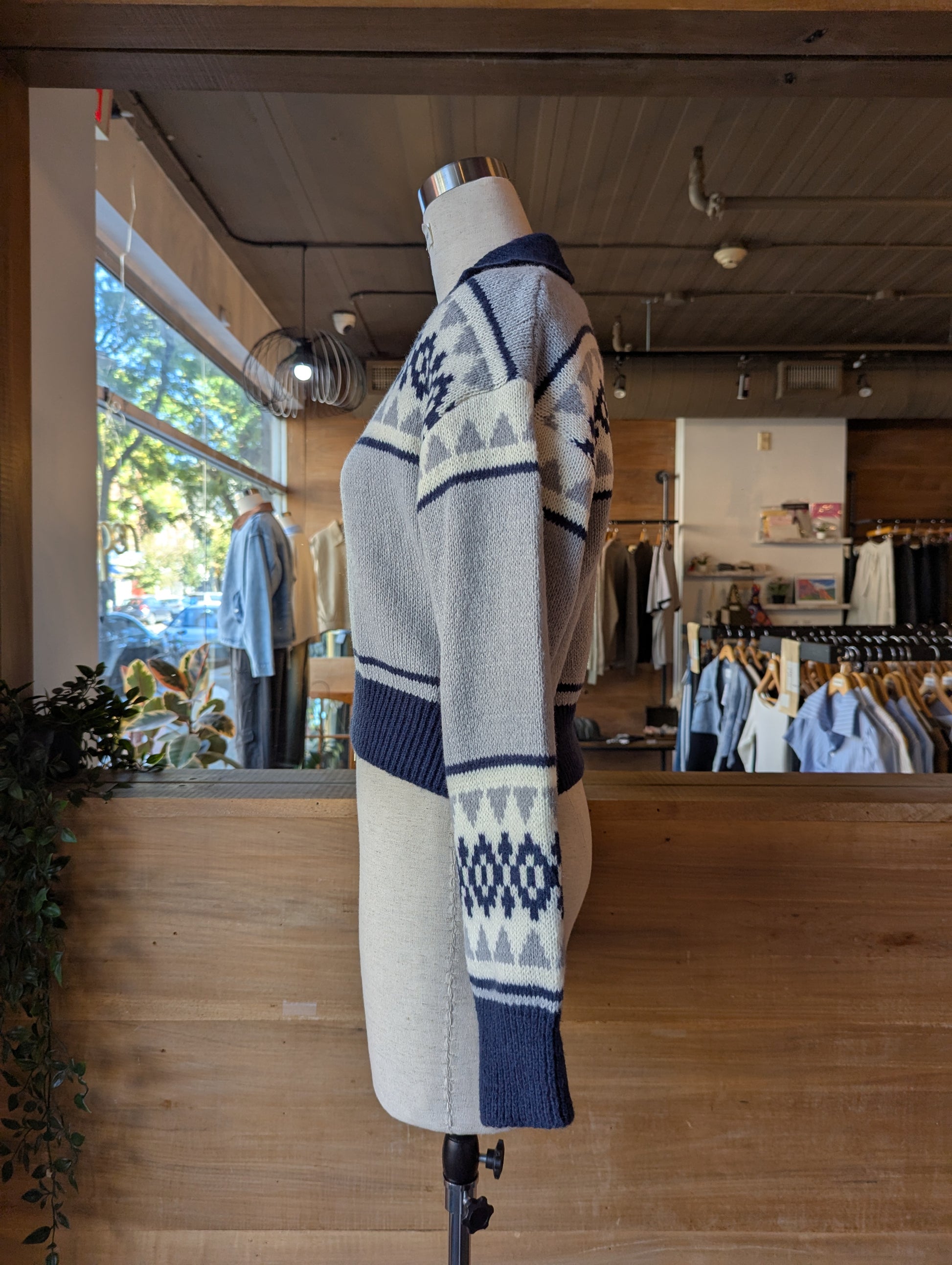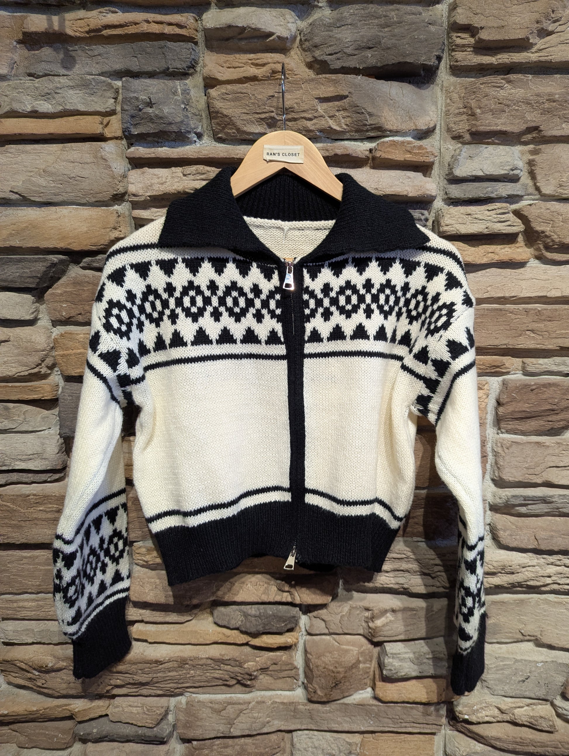 CROPPED GEOMETRIC PATTERN ZIP UP SWEATER