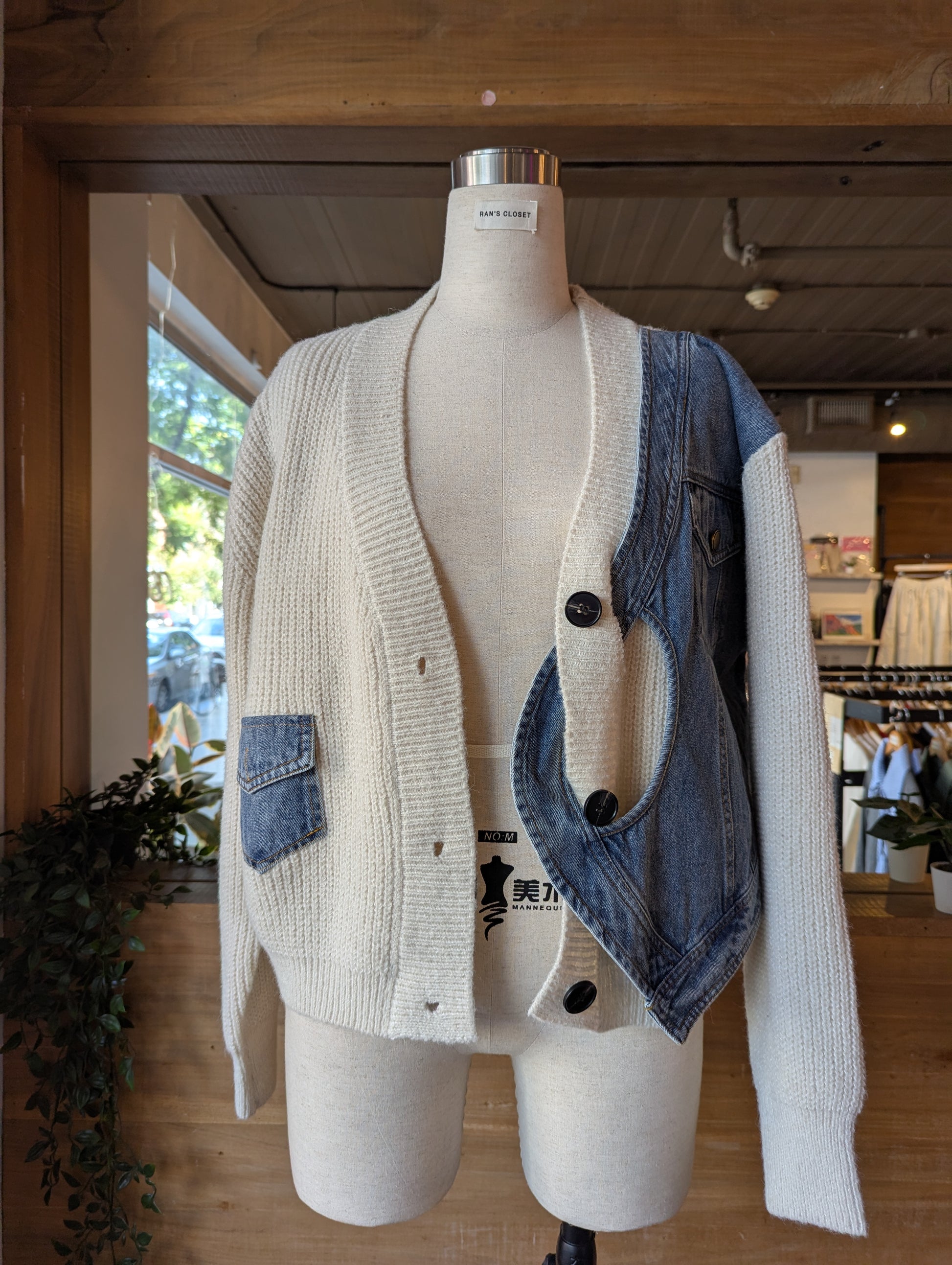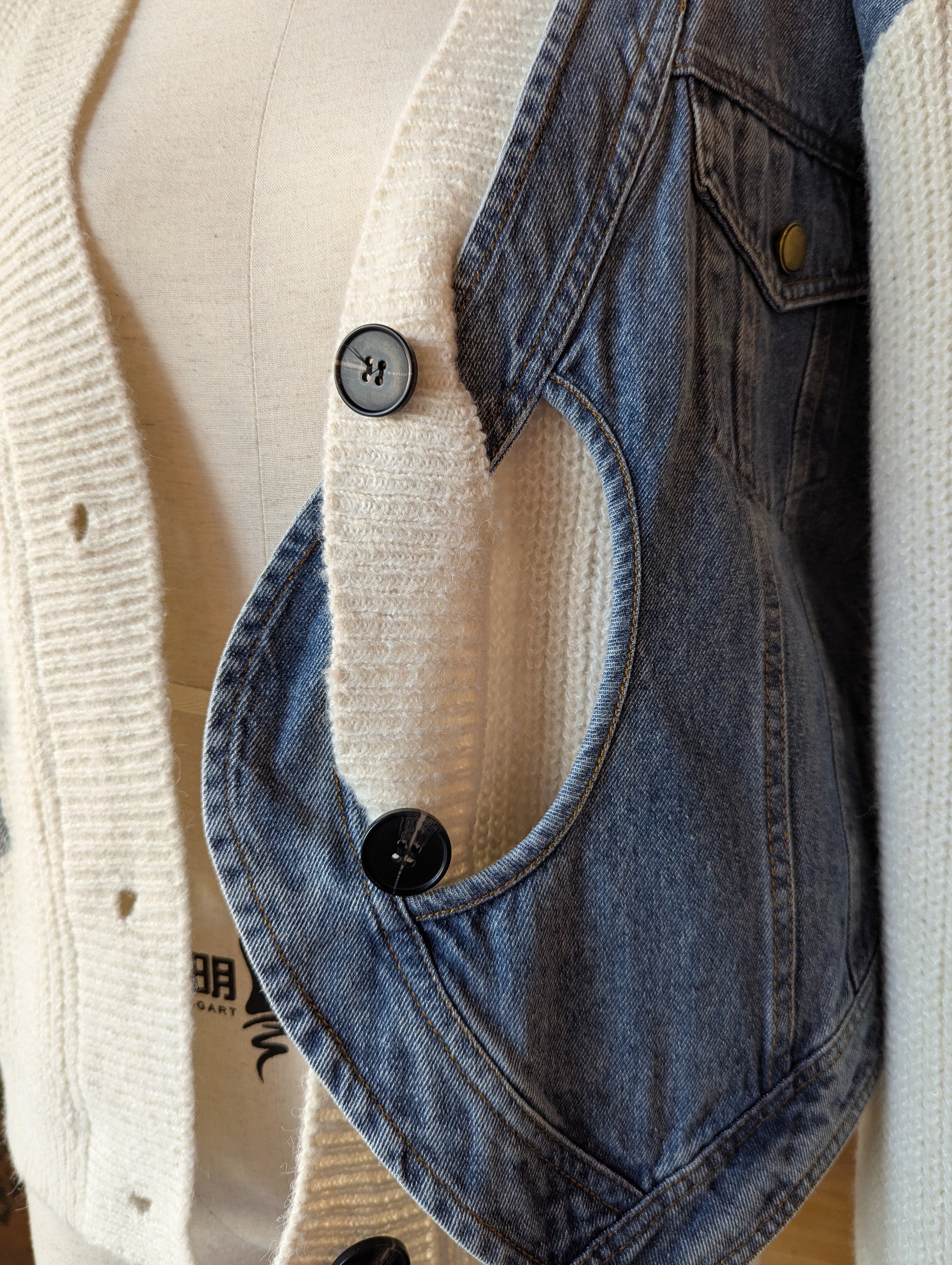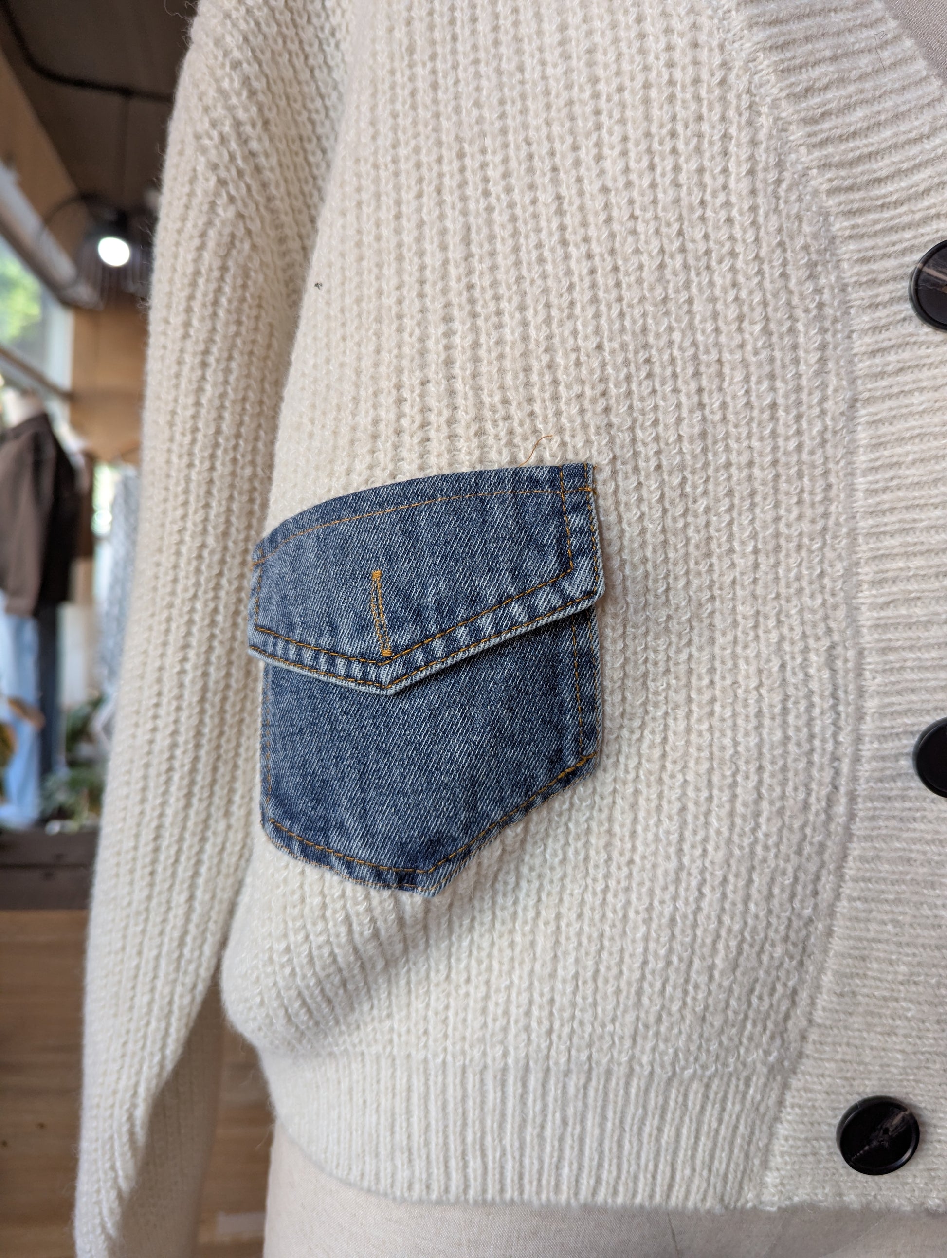 Denim Twist Detail Knit Cardigan