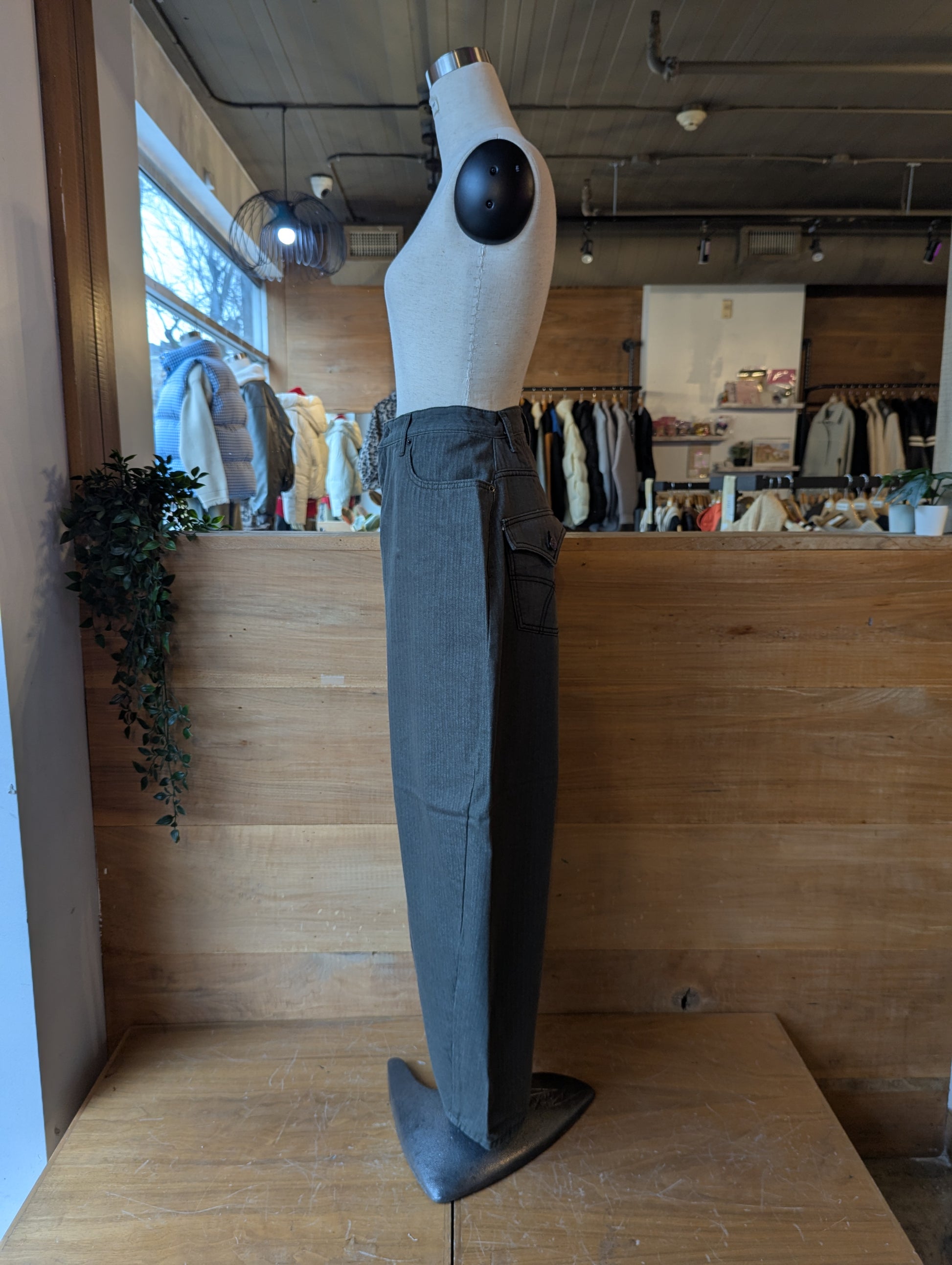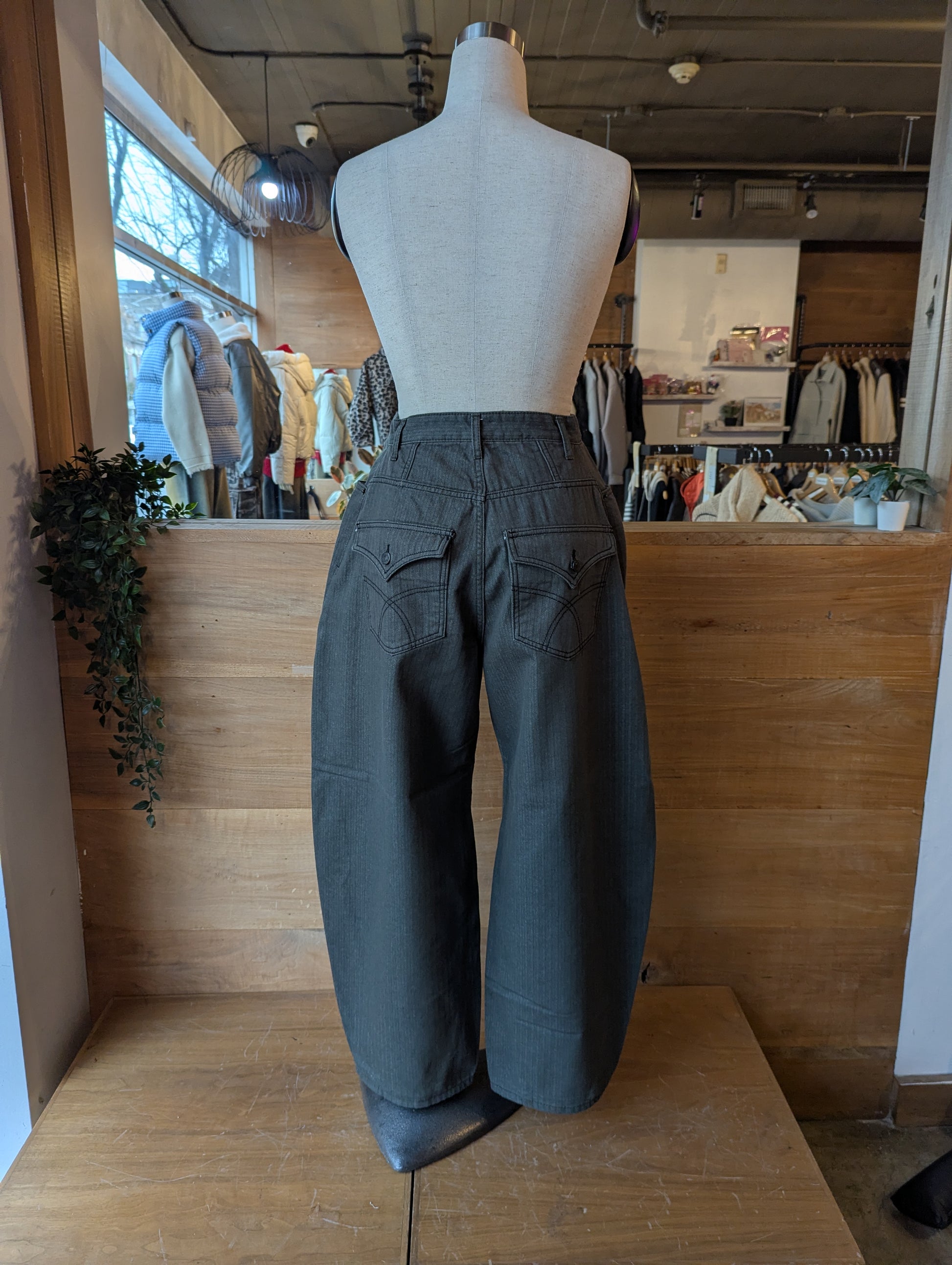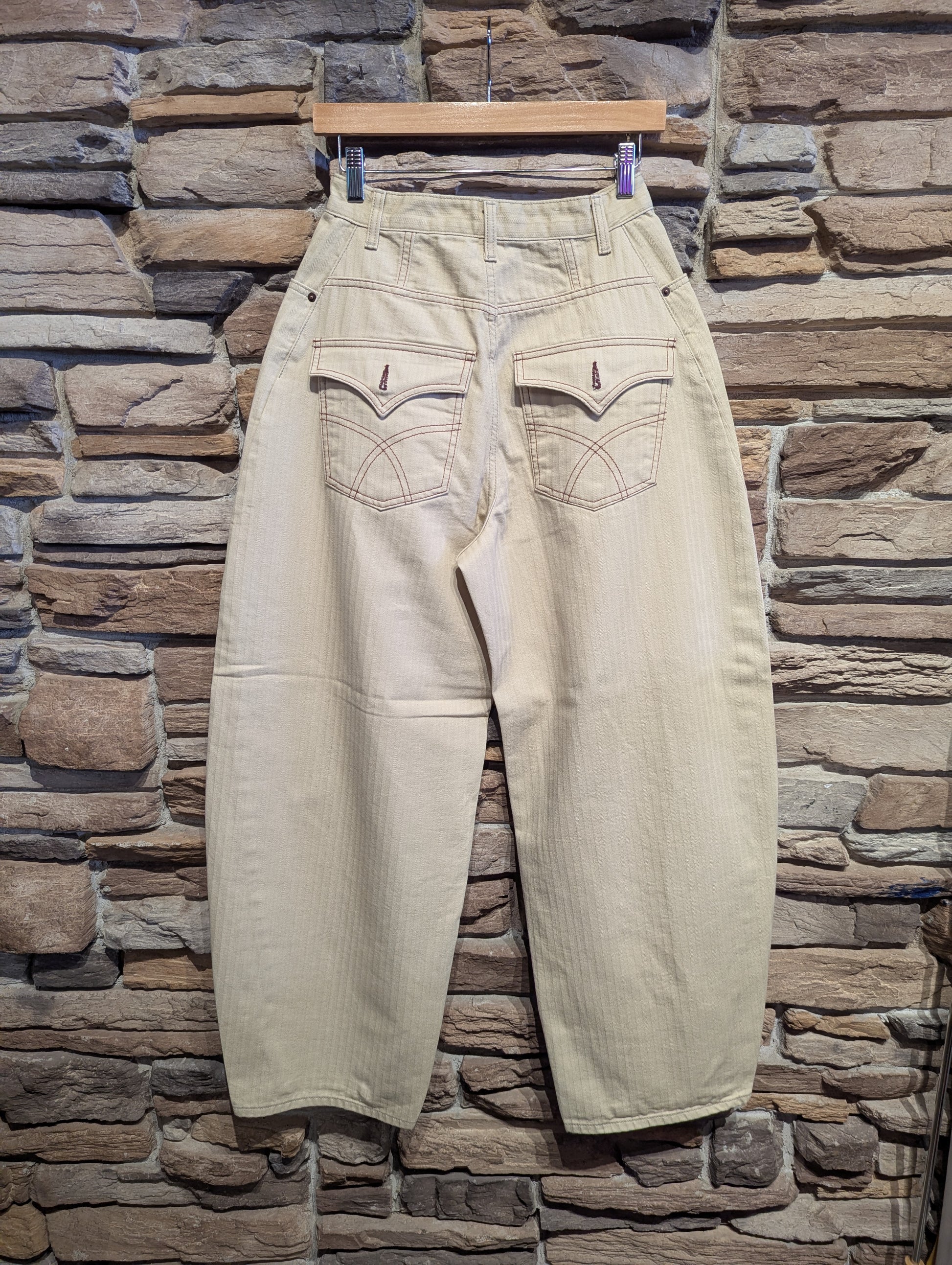 FLEECE LINED HIGH RISE BARREL JEANS WITH PINSTRIPES