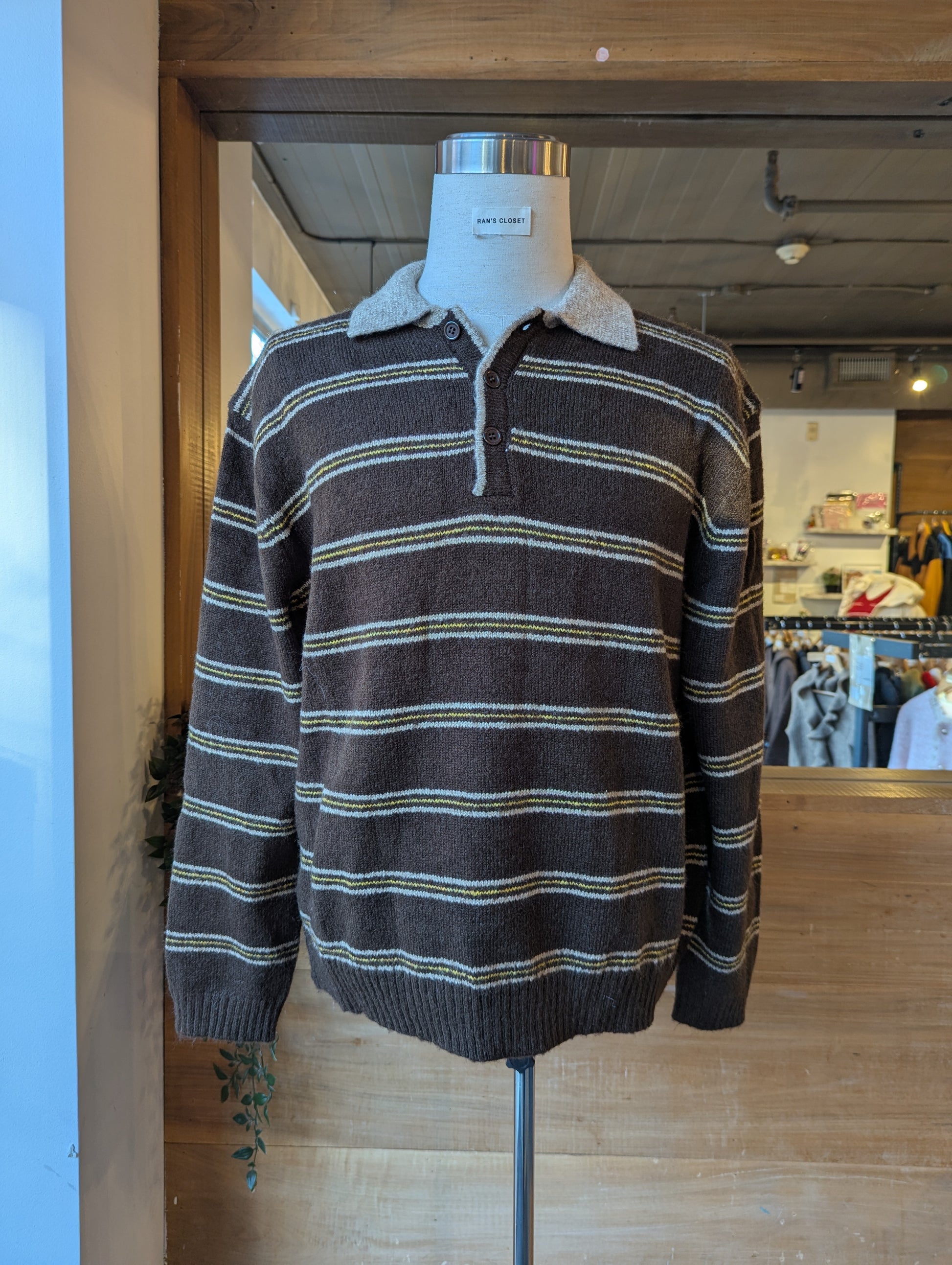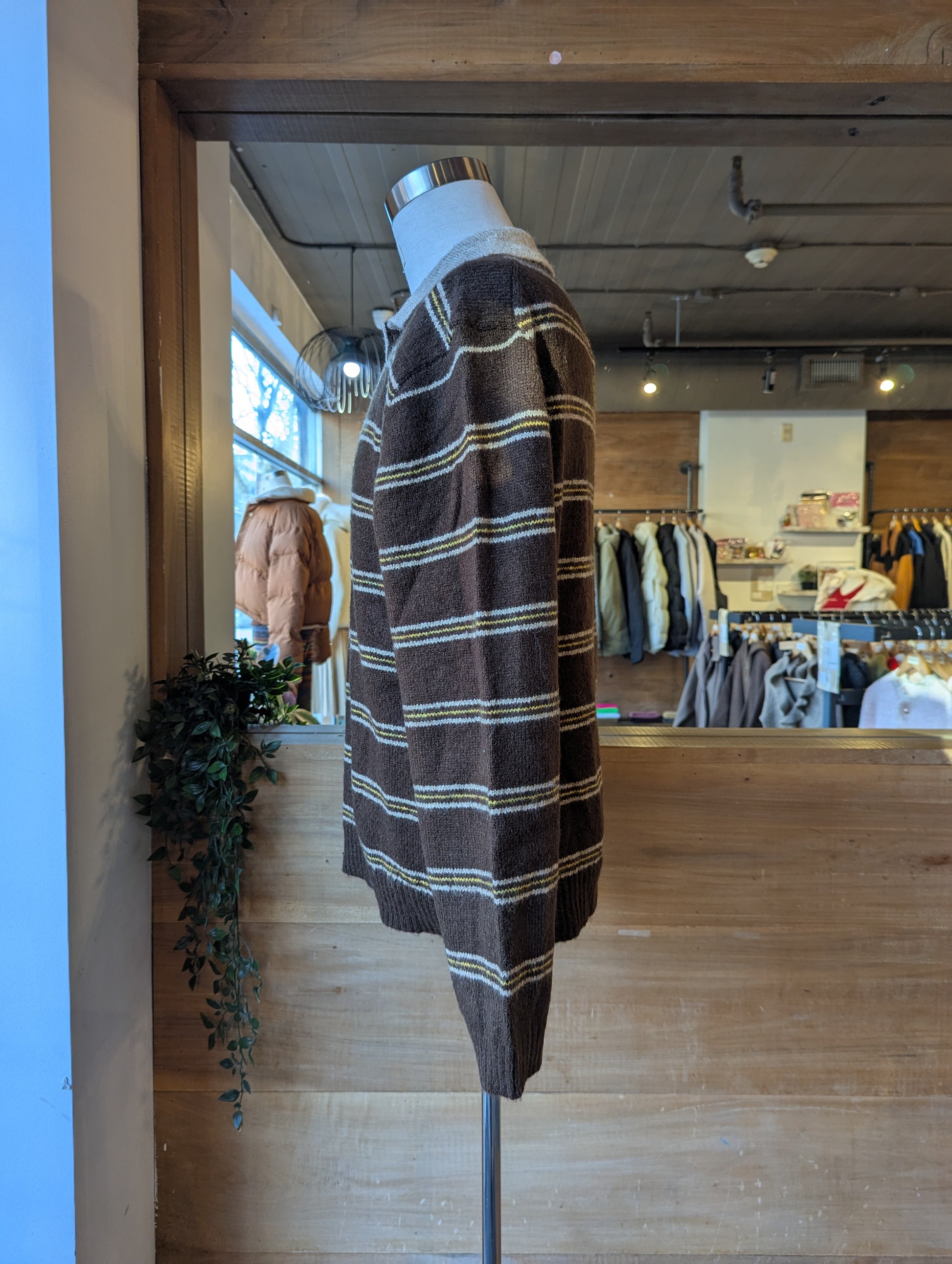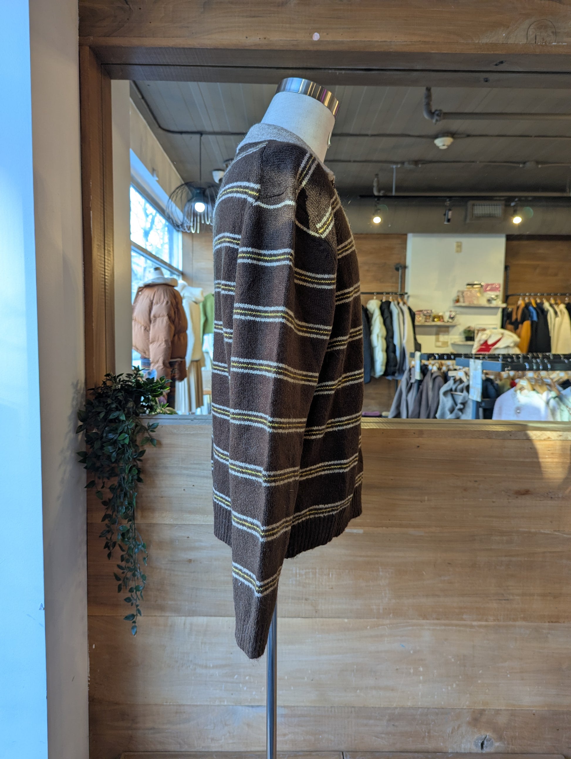 Fuzzy Striped Collar Sweater