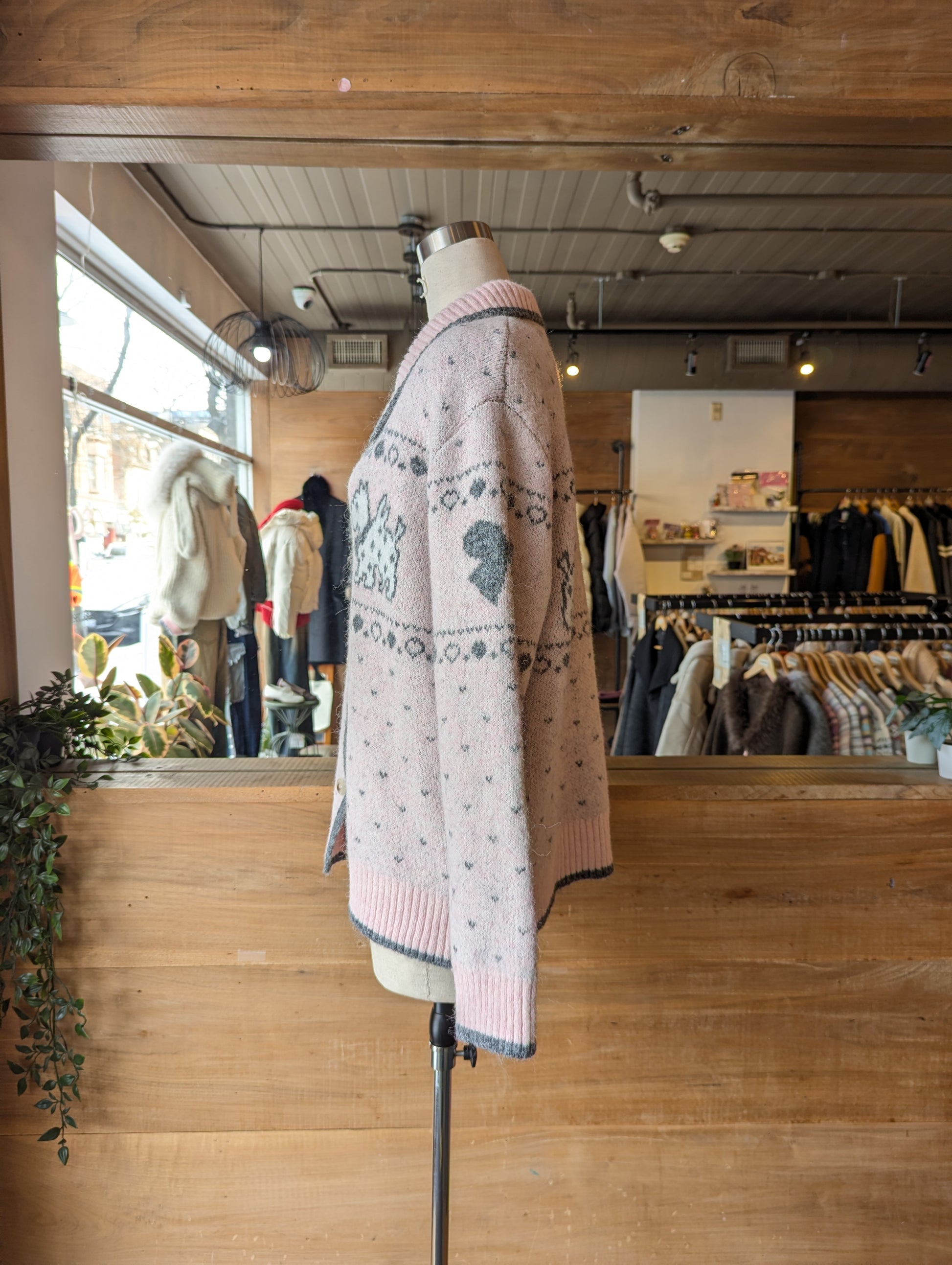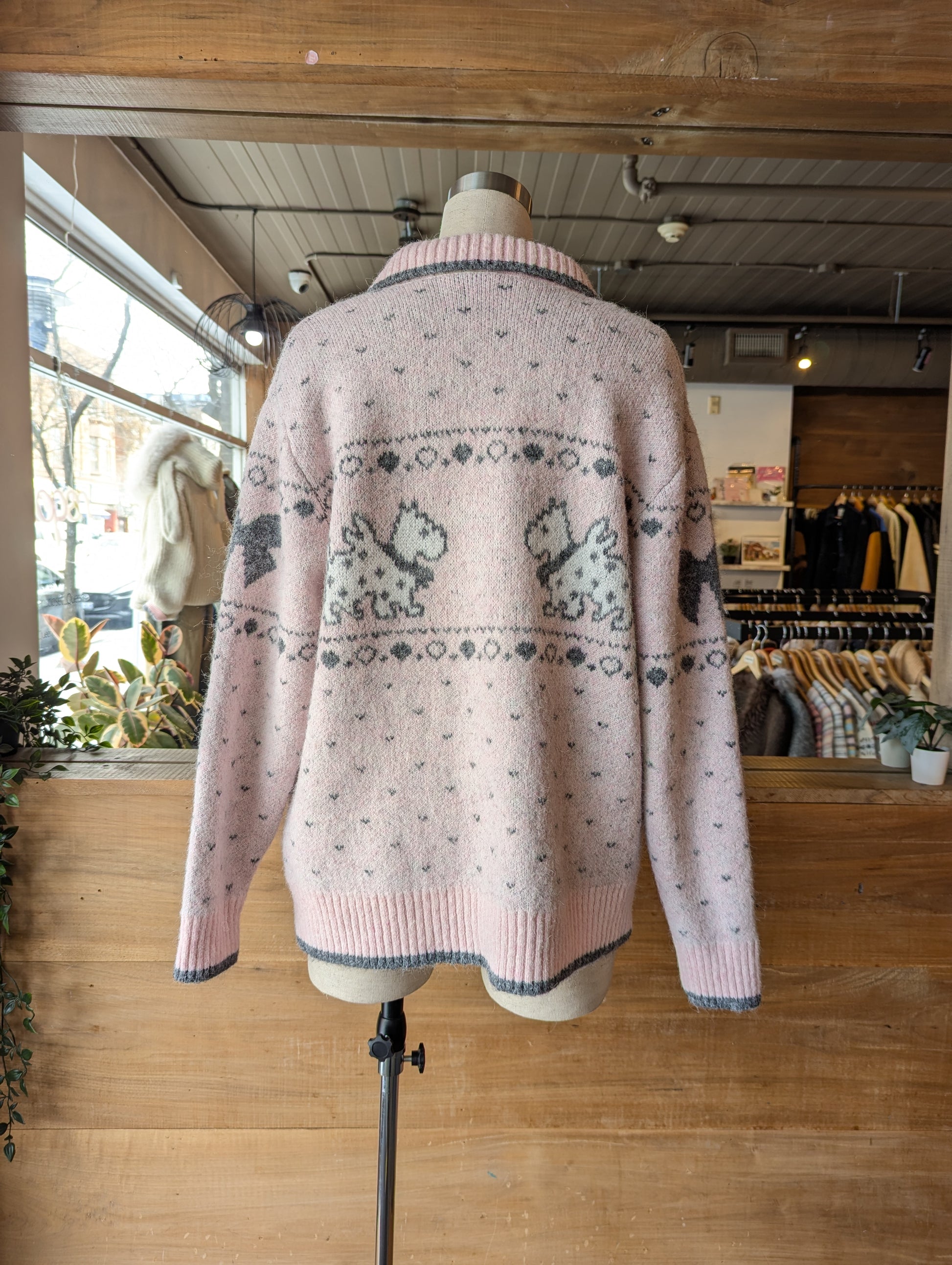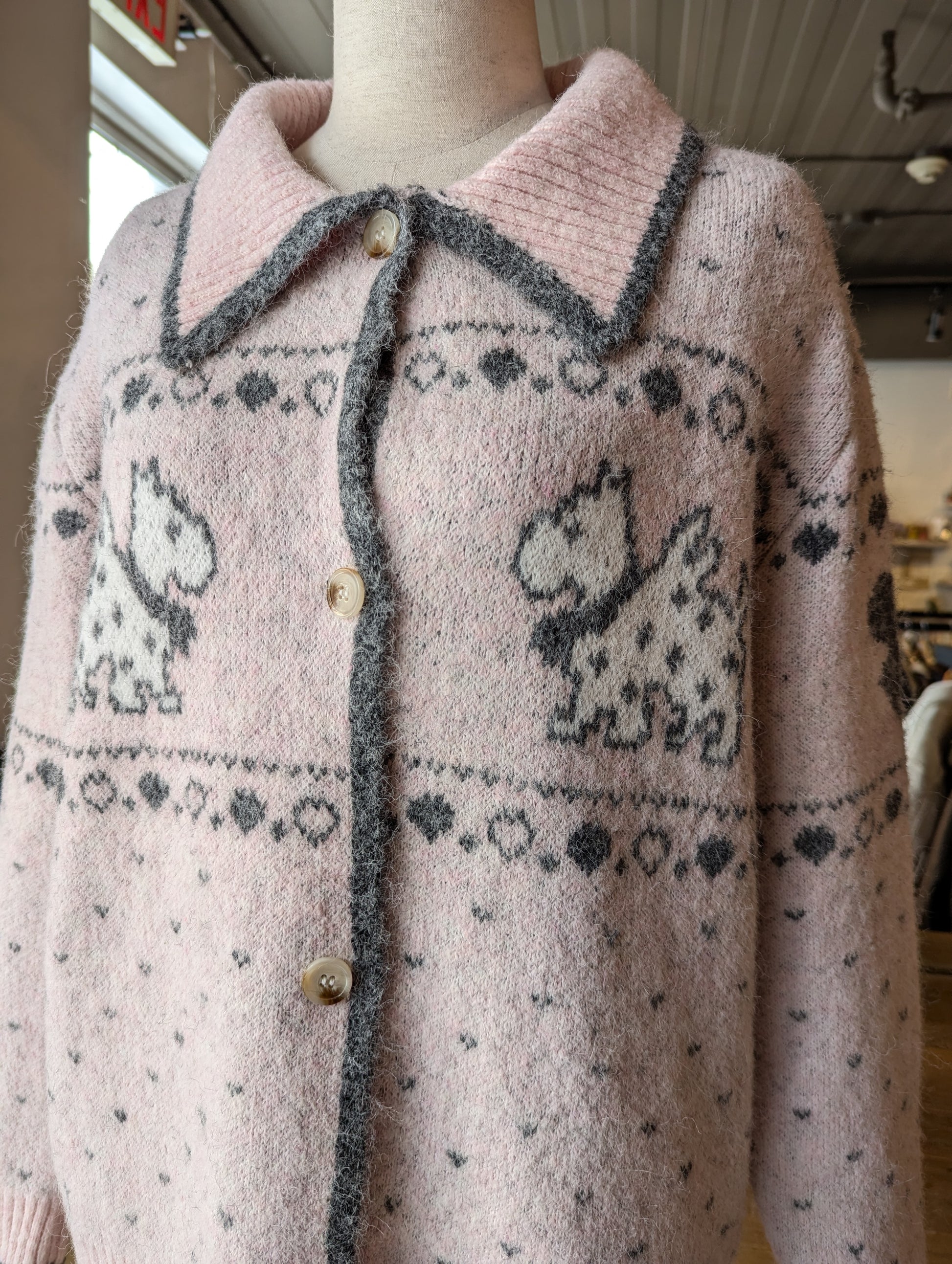 DOG GRAPHIC COLLARED KNIT CARDIGAN