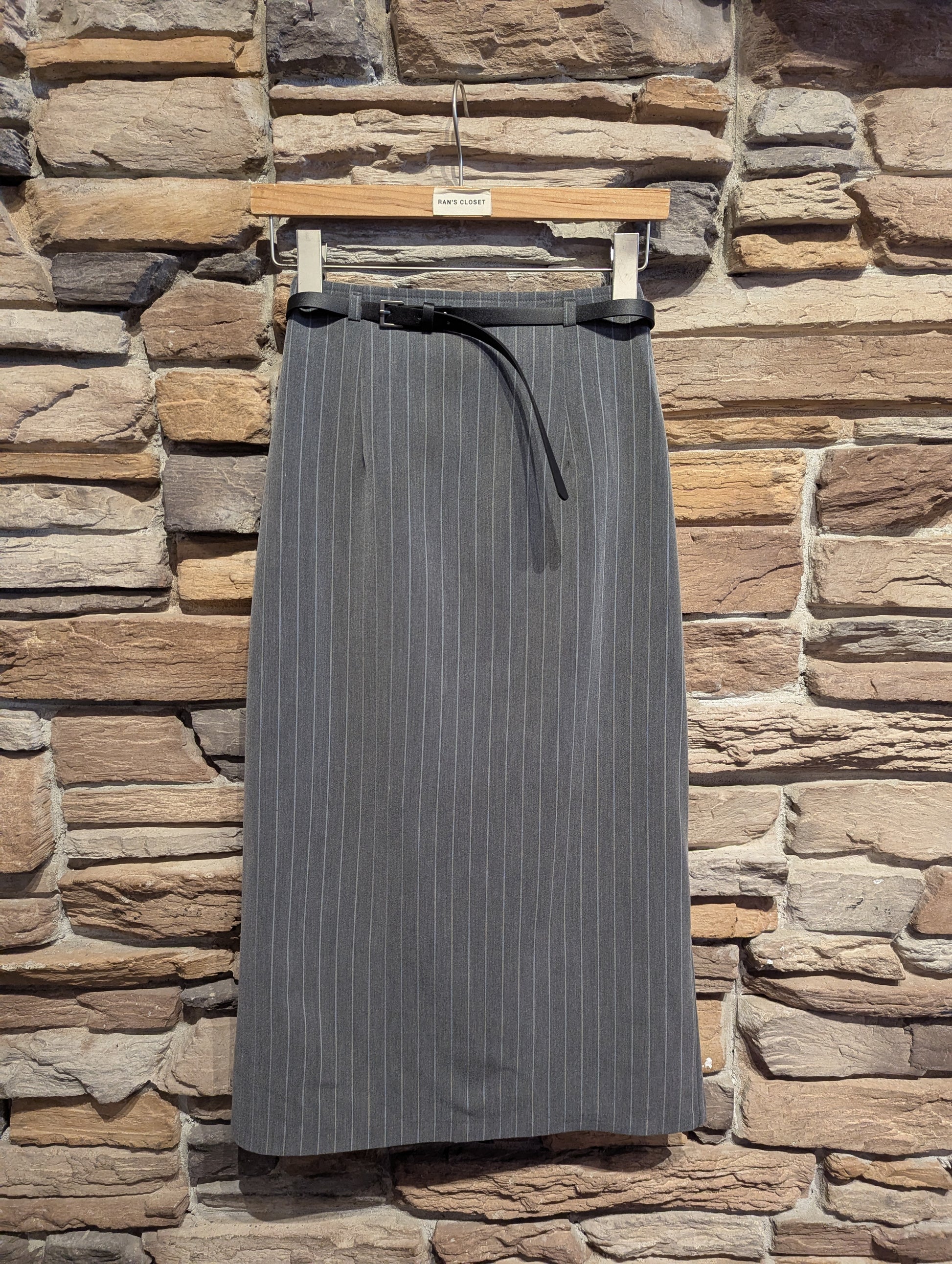 PINSTRIPE MIDI SKIRT WITH BELT