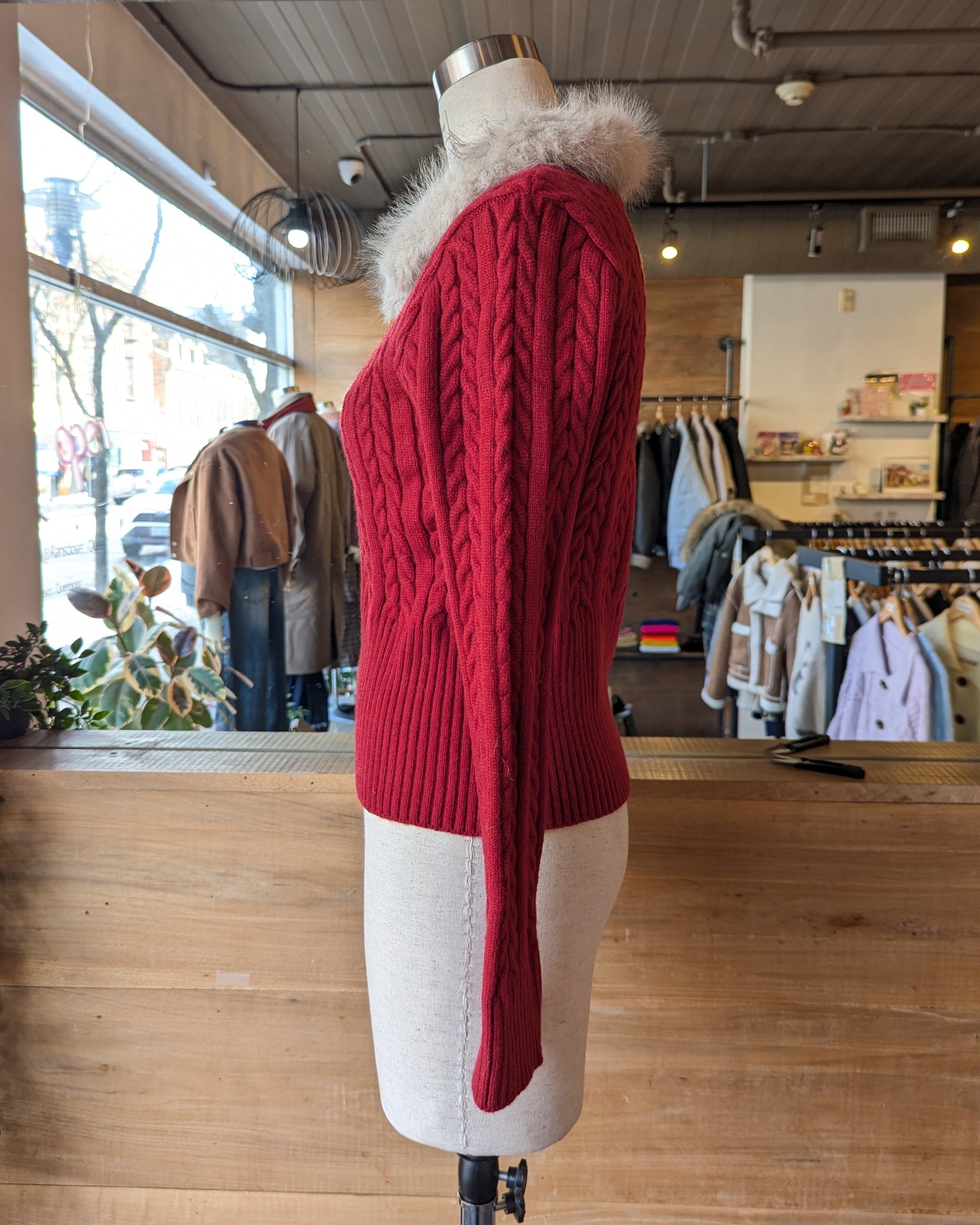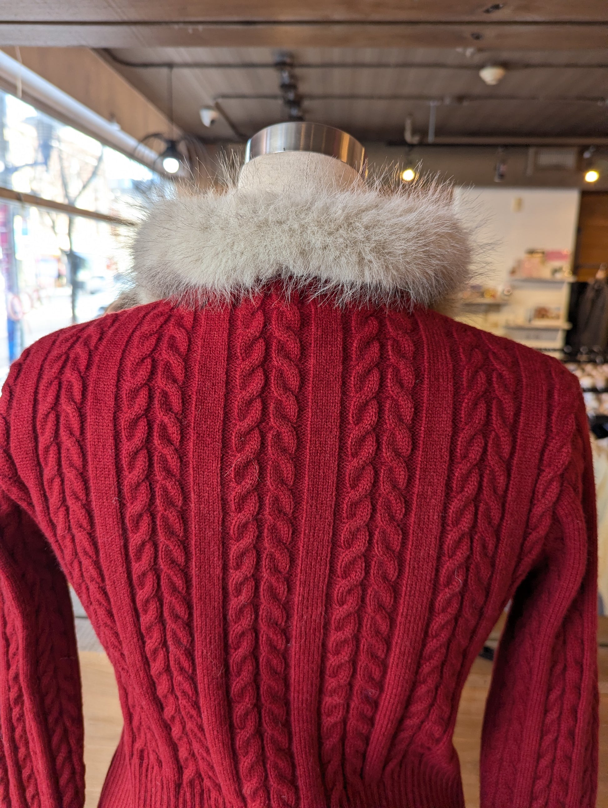 FUR TRIM CABLE KNIT SWEATER