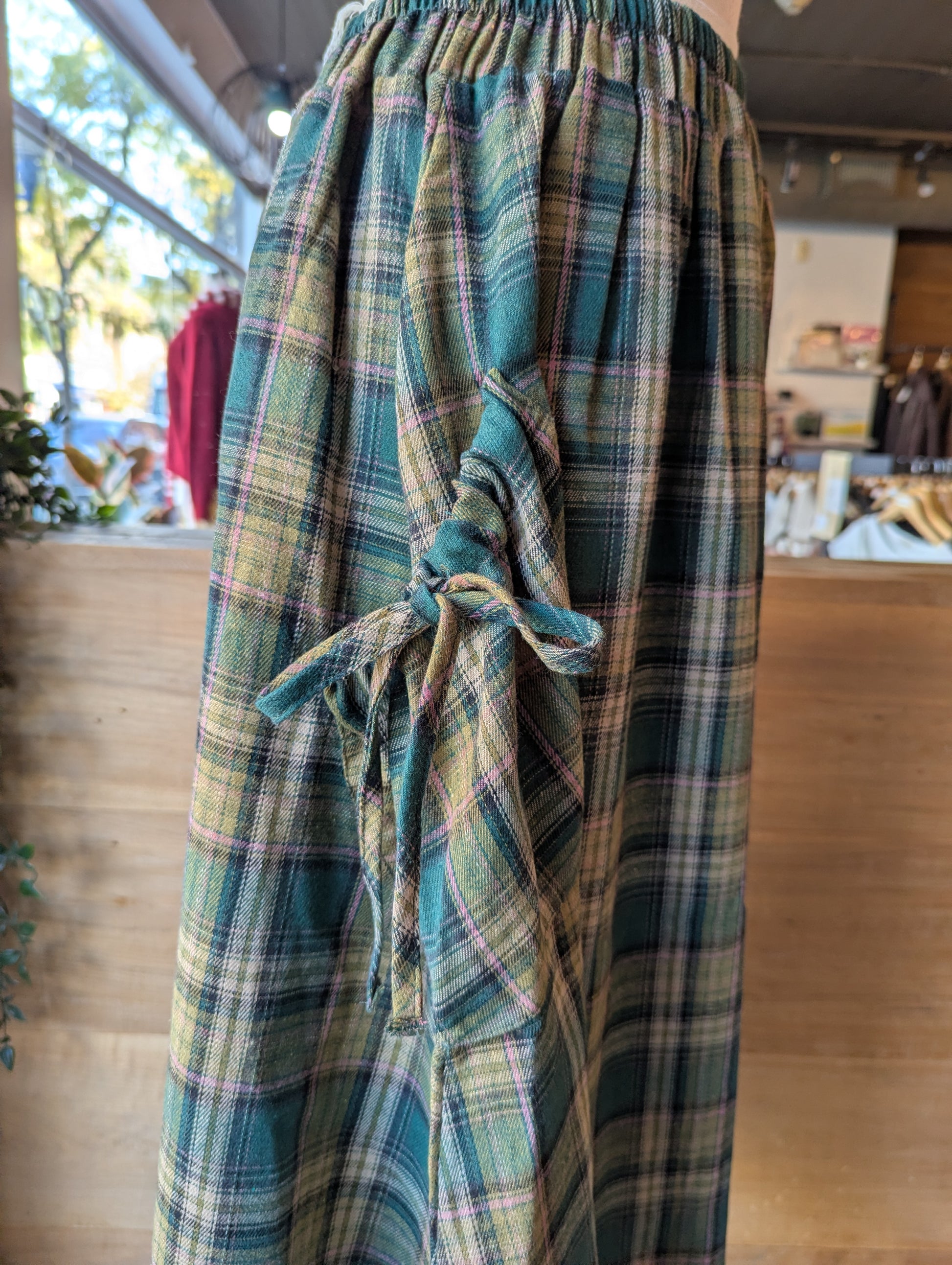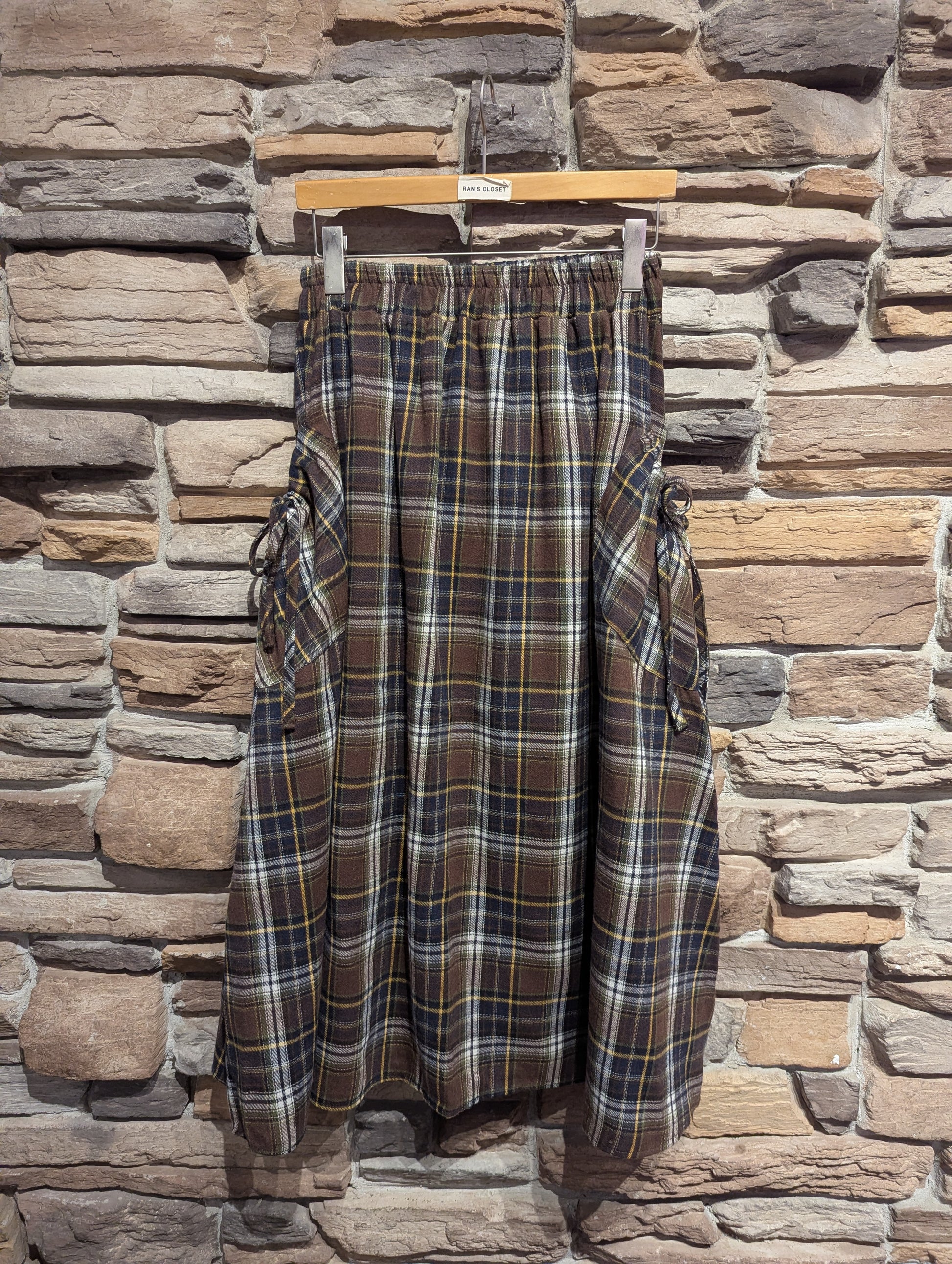 PLAID MAXI SKIRT WITH TIE UP POCKETS