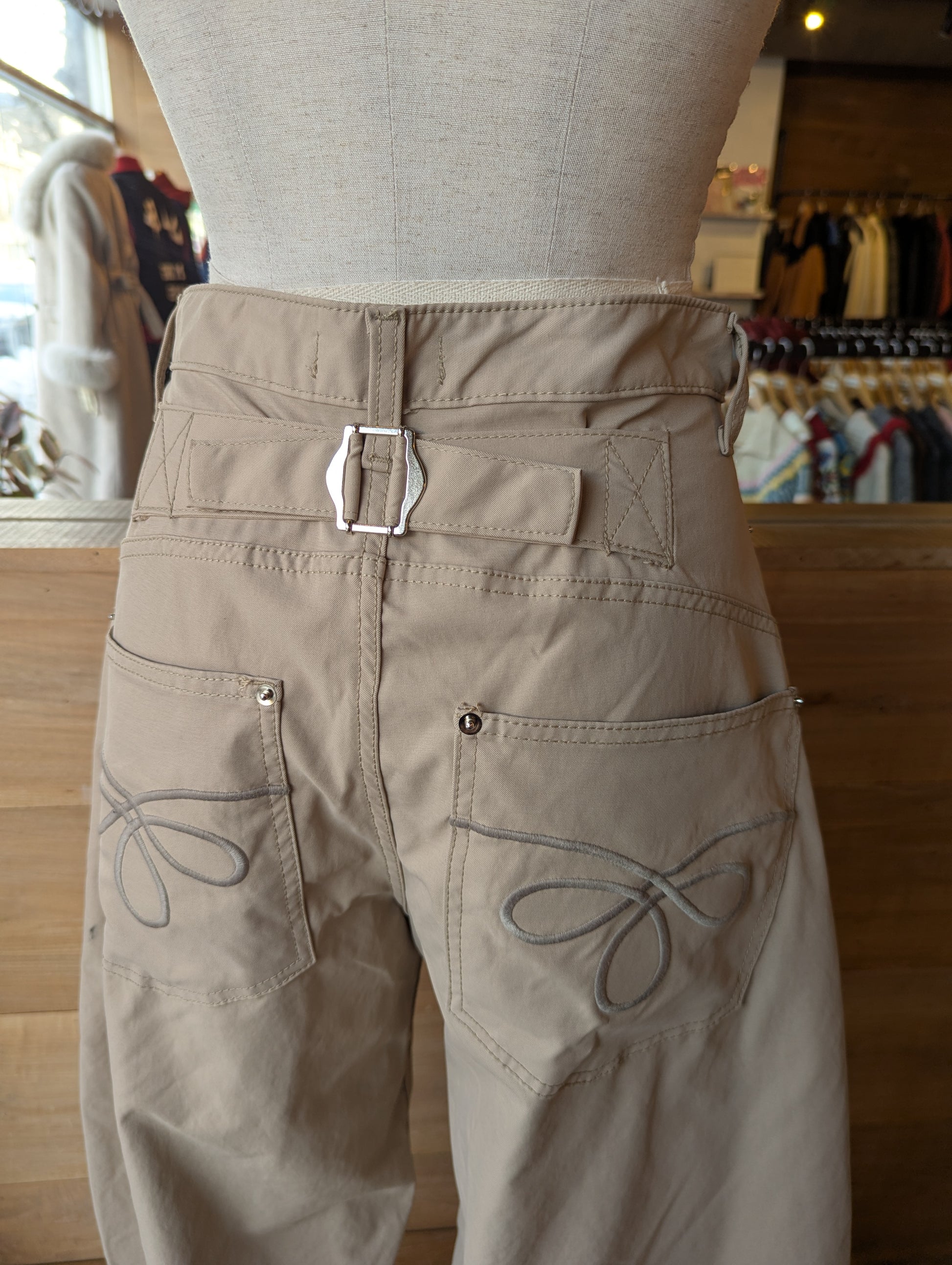 EMBROIDERED POCKET BARREL PANTS