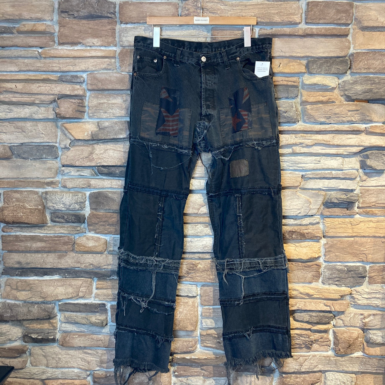 REWORKED LEVI'S PATCHWORK BLACK JEANS
