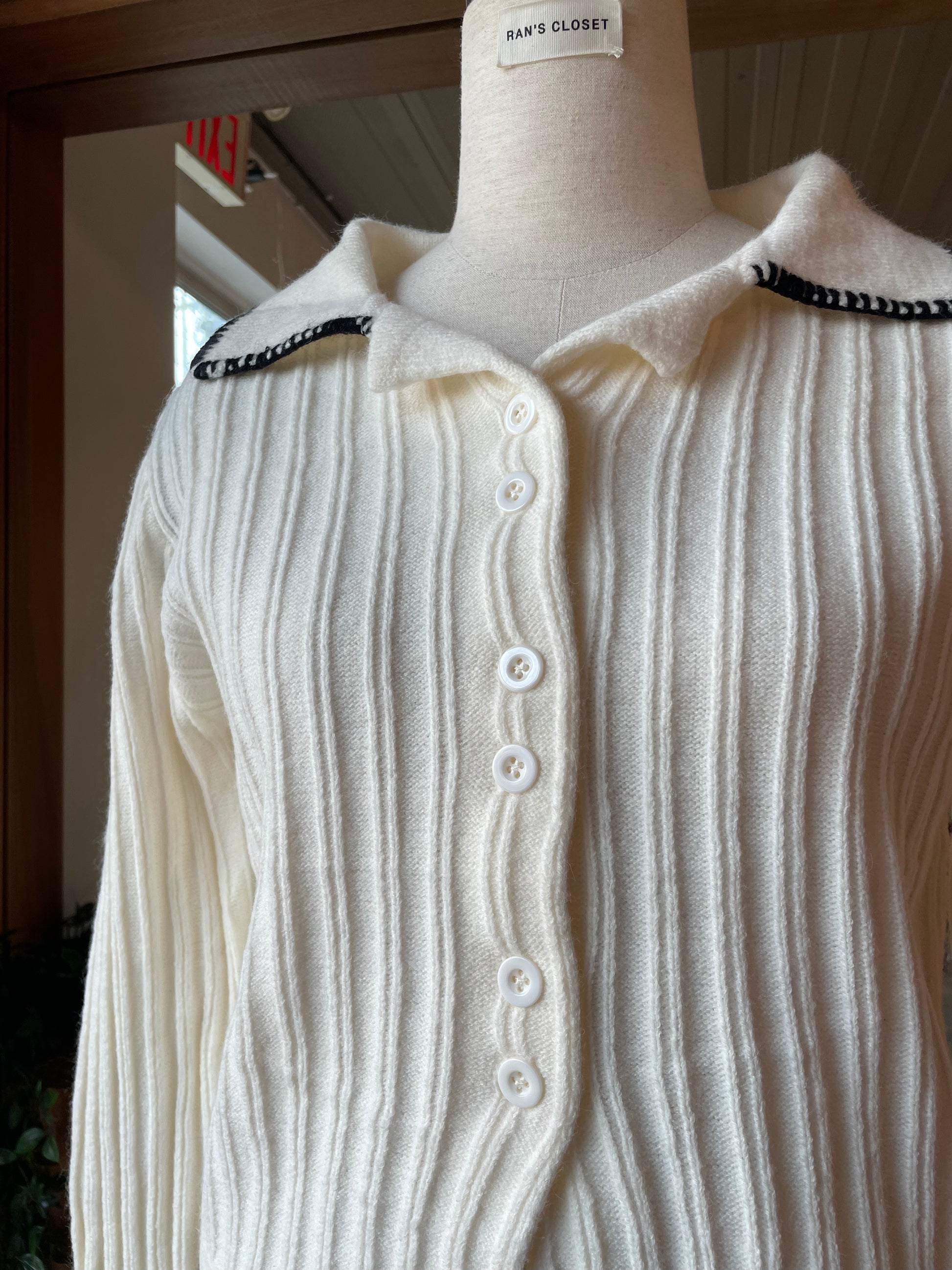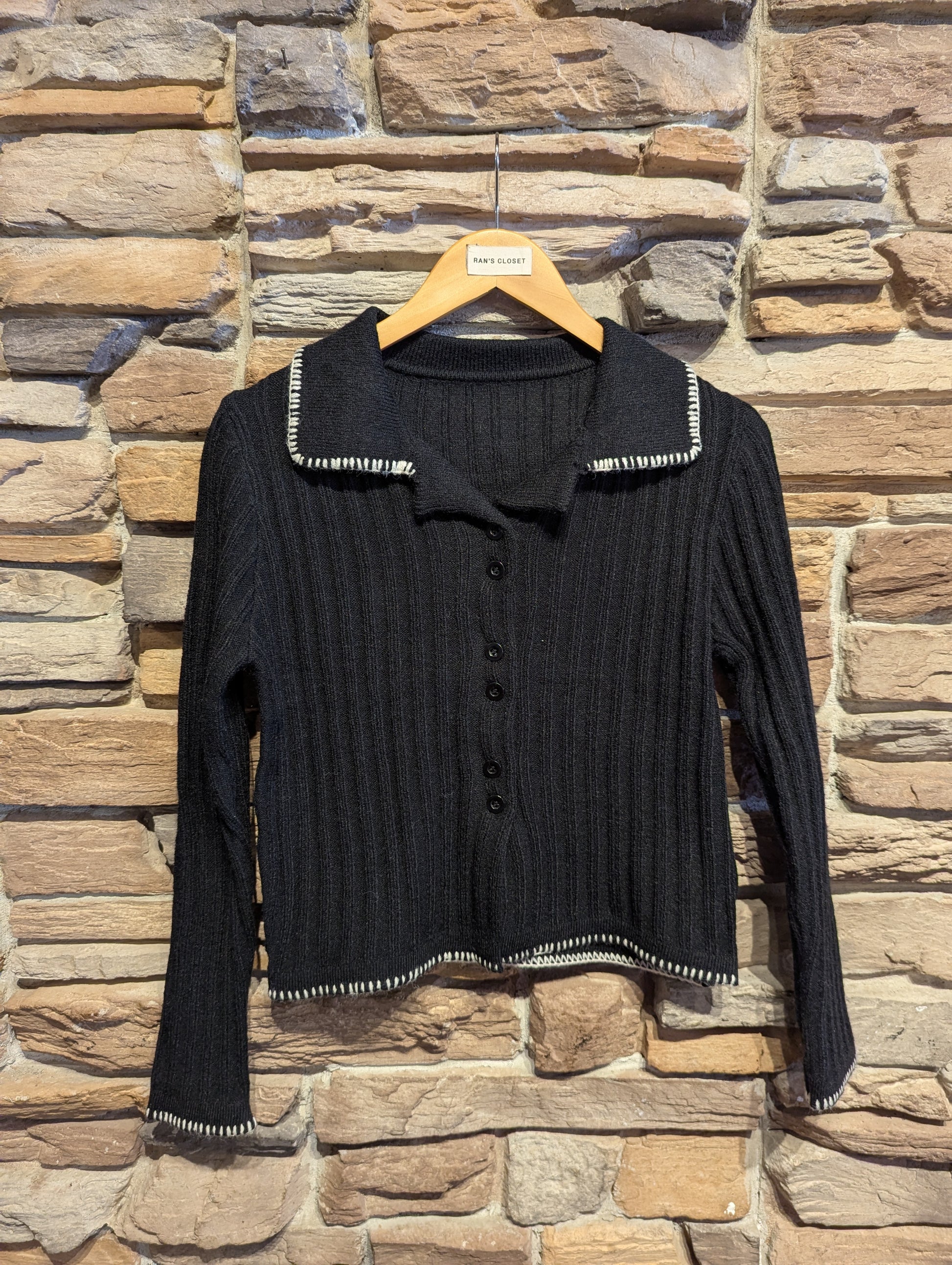 RIBBED LONG SLEEVE CARDIGAN WITH STITCH TRIM