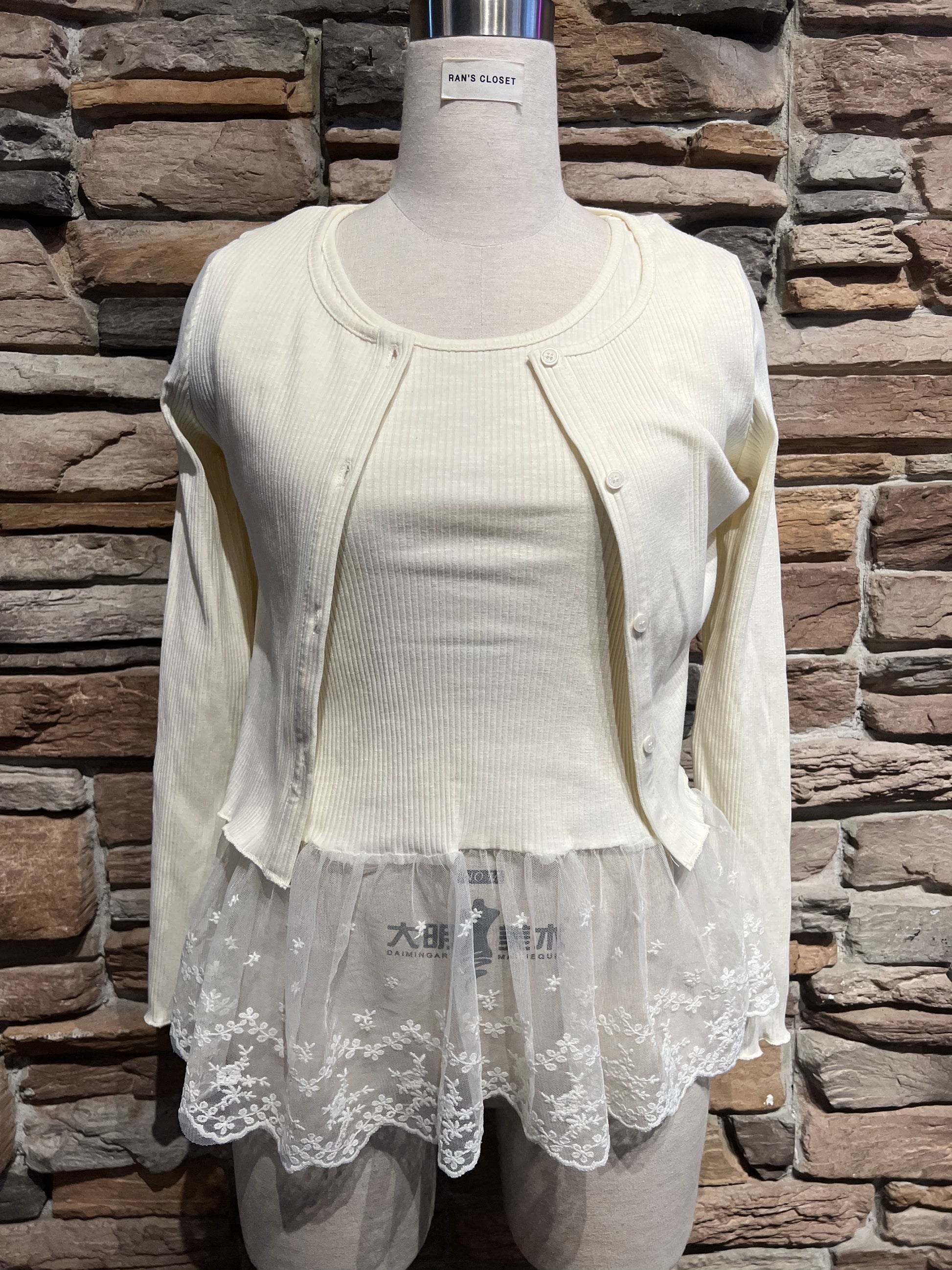 SHEER PEPLUM TANK TOP AND CARDIGAN SET