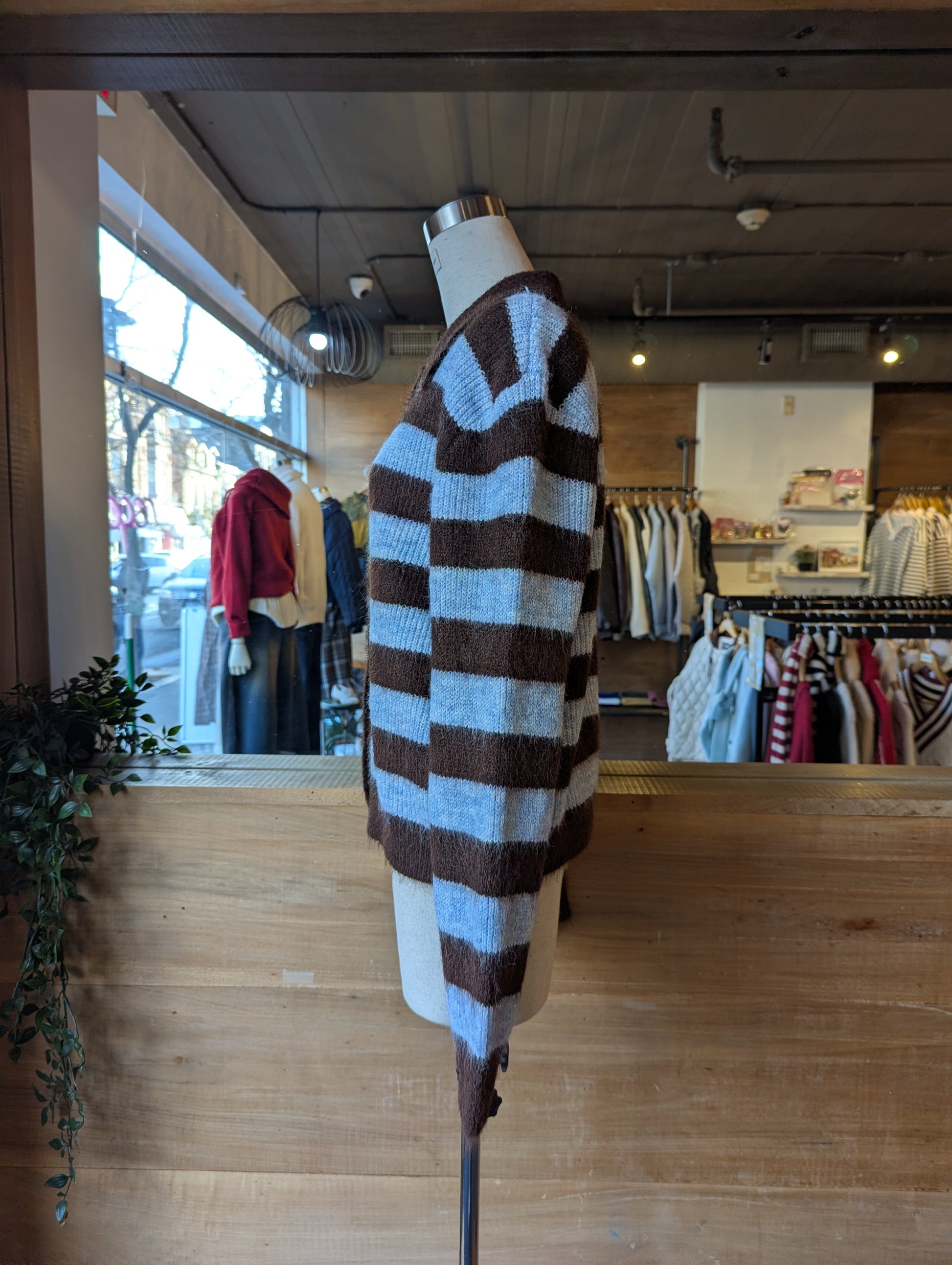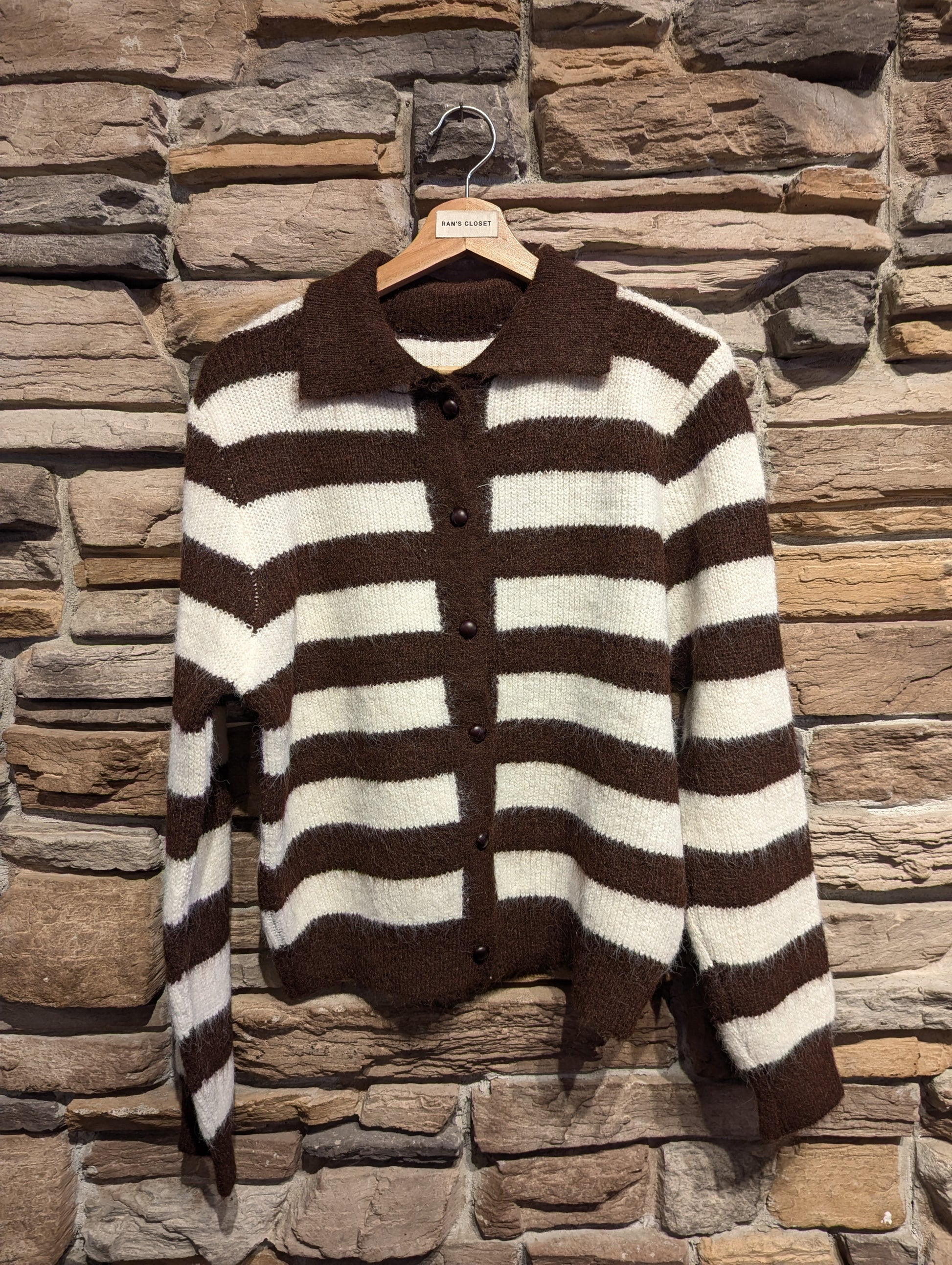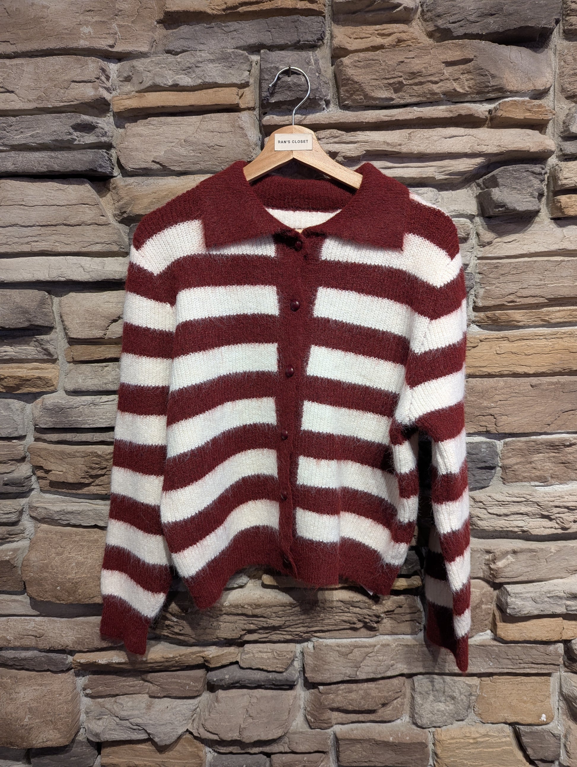 STRIPE COLLARED CARDIGAN