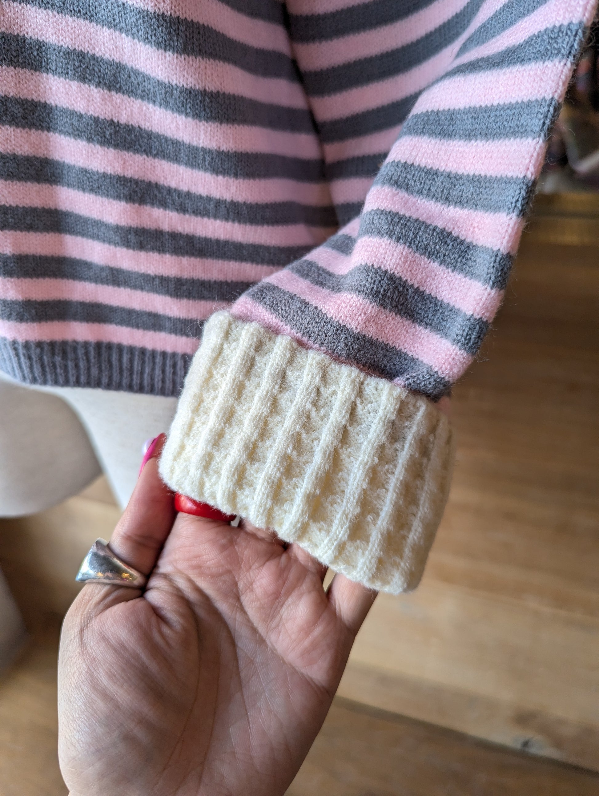 Striped Button Up Cardigan with Cable Knit Detailing