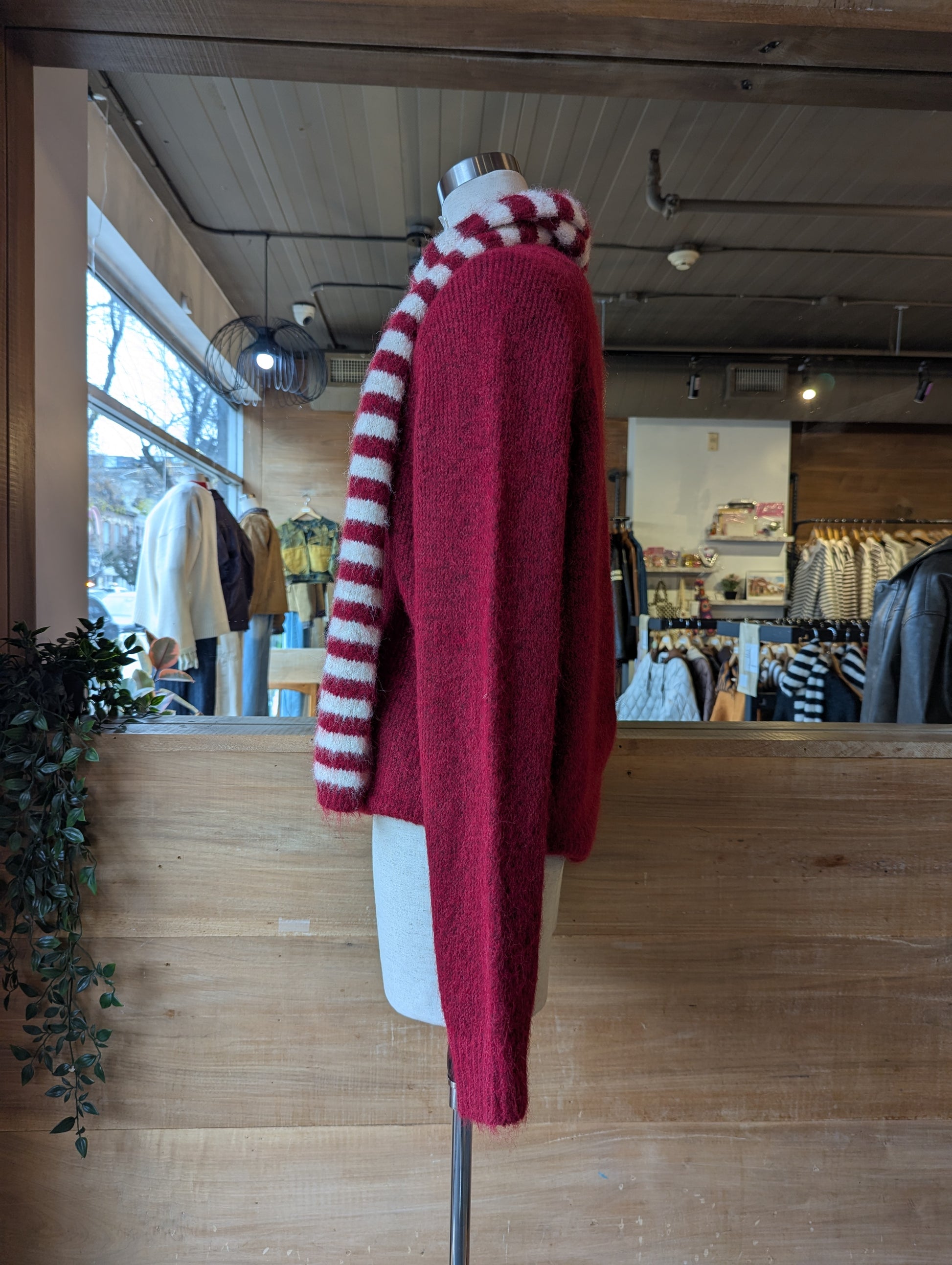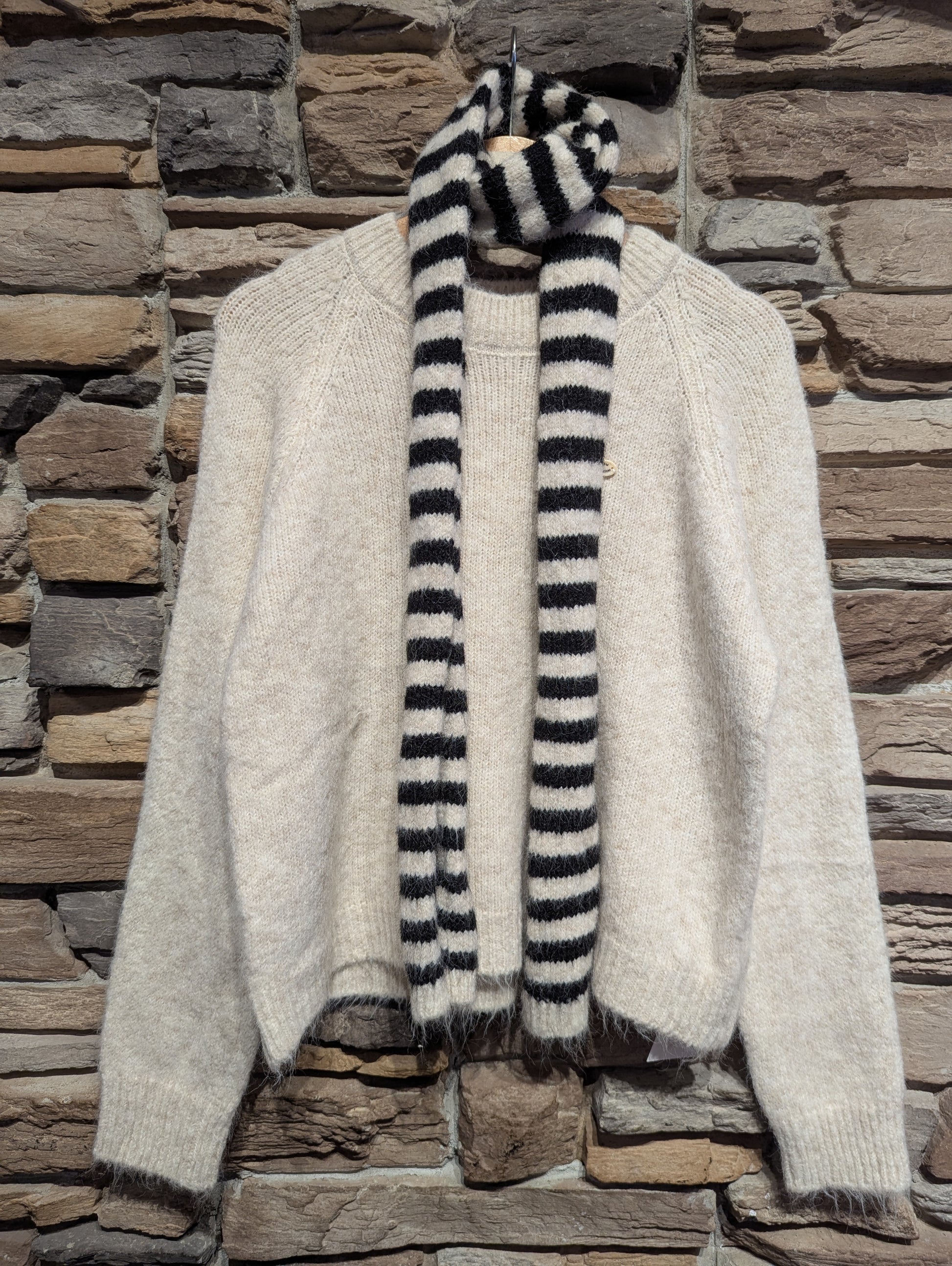 SWEATER WITH STRIPED SCARF SET