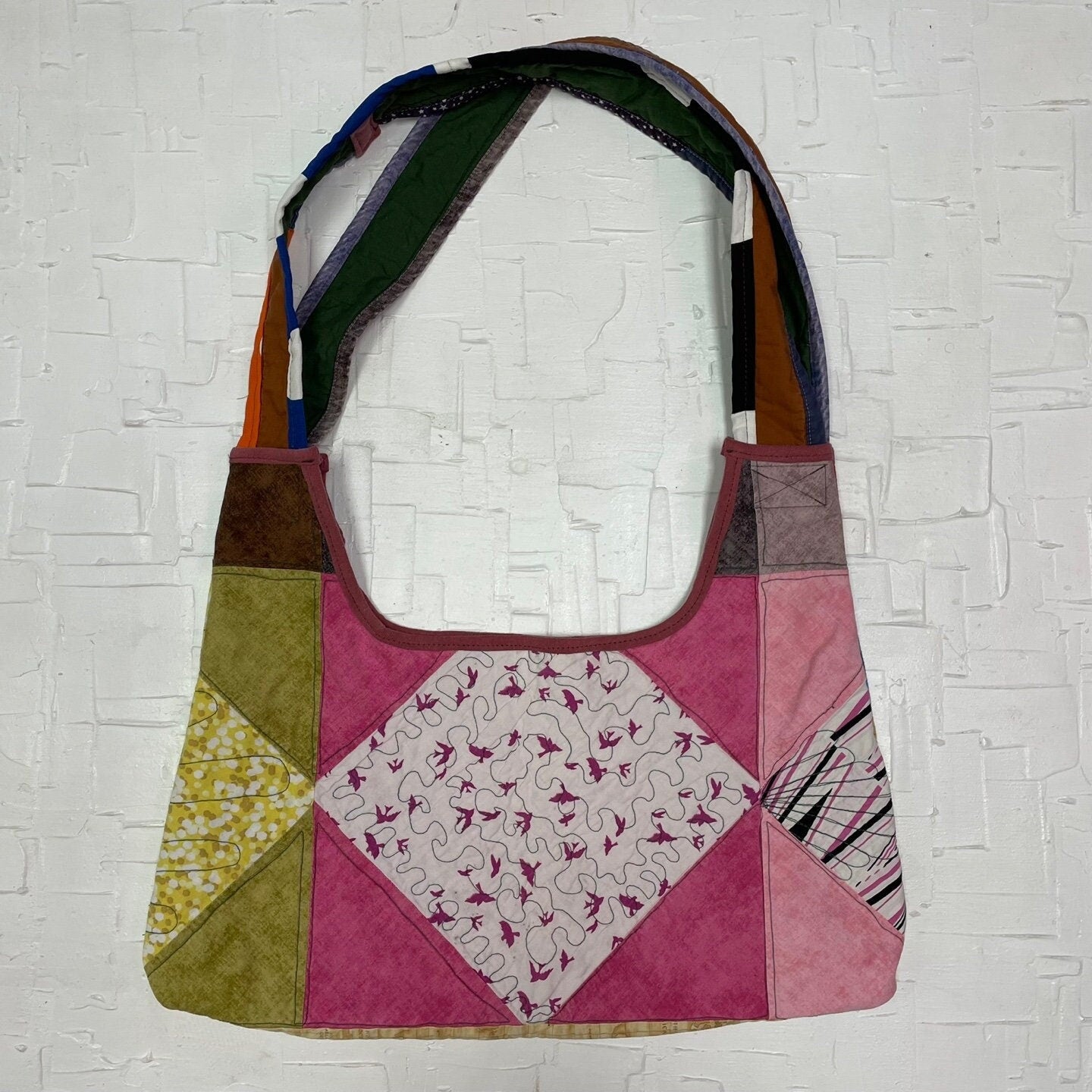 Upcycled Pink, Blue, Green Patterned Quilted Fabric Army Green Reversible Tote Bag | Upcycled | Handmade | Rans Closet Canada | SKU: RW-2