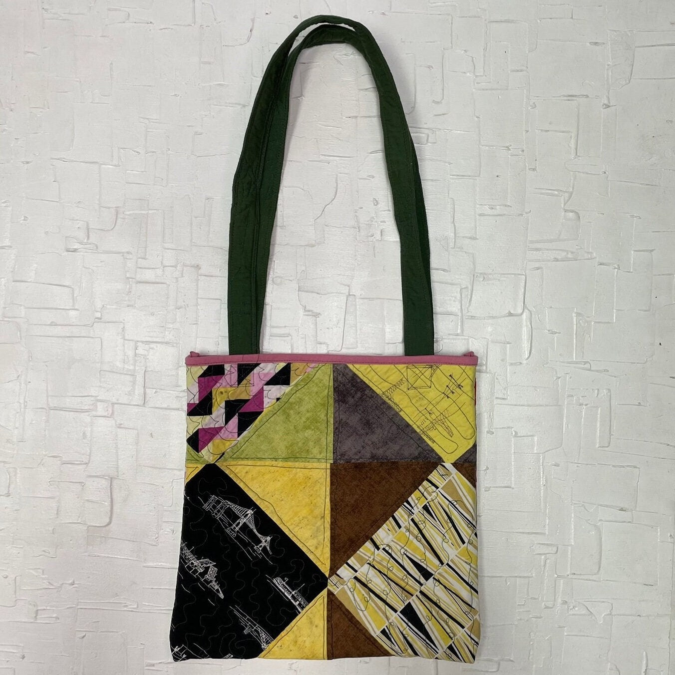 UPCYCLED YELLOW, RED, BROWN, AND GREEN QUILTED PATTERNED FABRIC REVERSIBLE RECTANGULAR TOTE BAG | HANDMADE | RANS CLOSET CANADA | SKU: RW-5