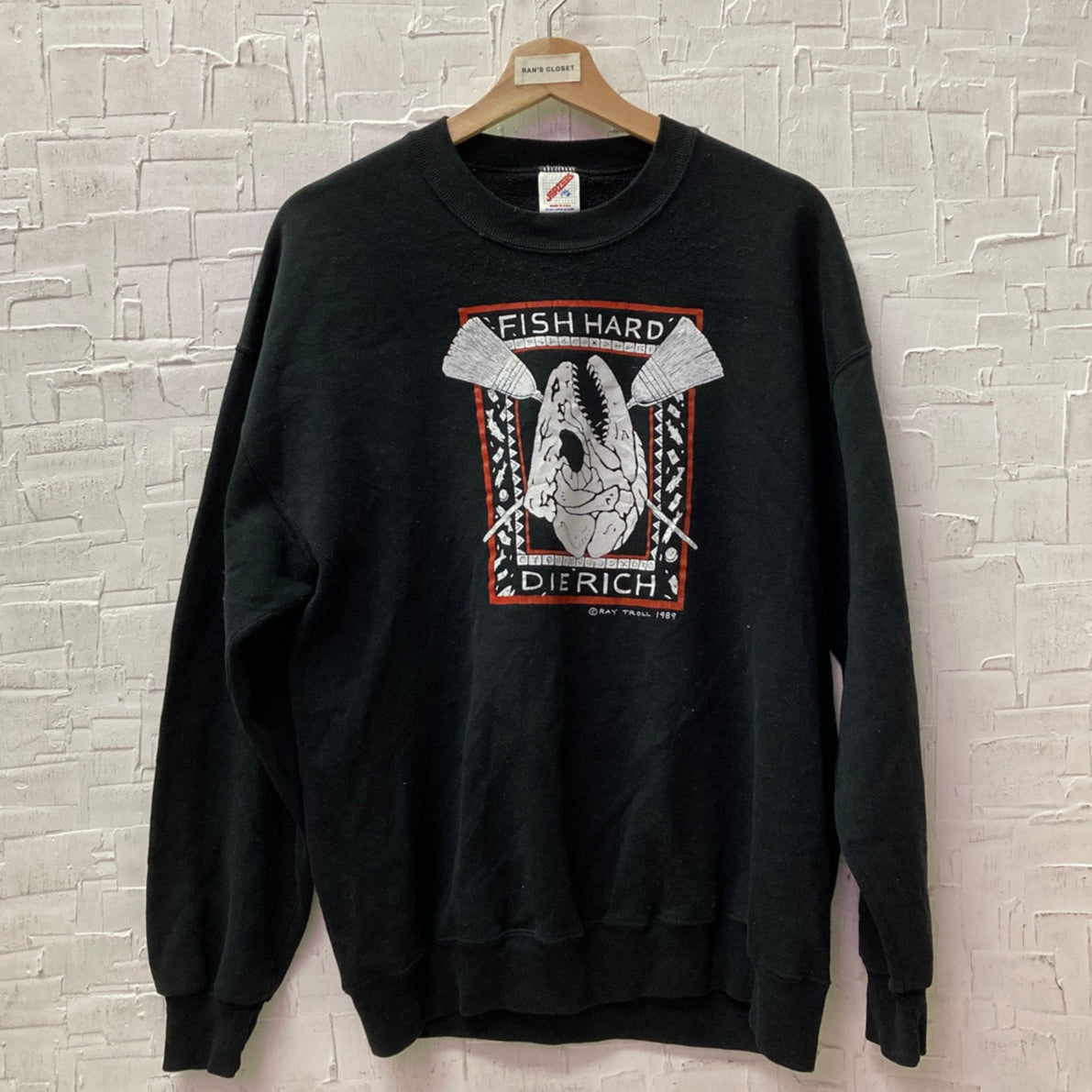 VINTAGE 1989 RAY TROLL "FISH HARD..." GRAPHIC SWEATSHIRT