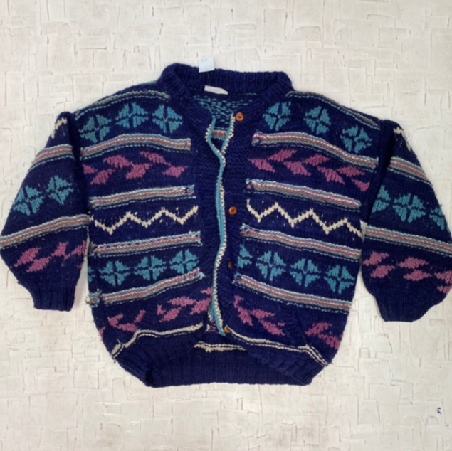VINTAGE KNIT WOOL BUTTON UP CARDIGAN HAND MADE IN ECUADOR