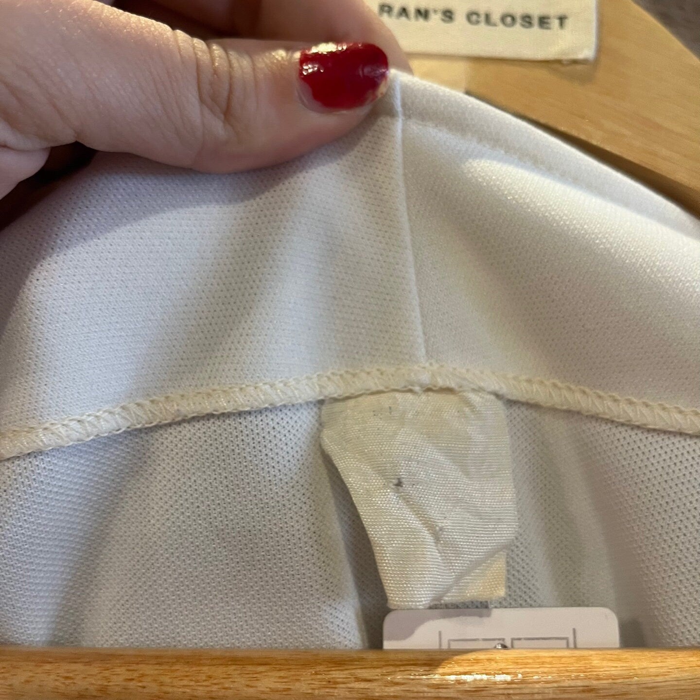 Used - loose threads on buttons and appliqué, stain on left sleeve, faded tag