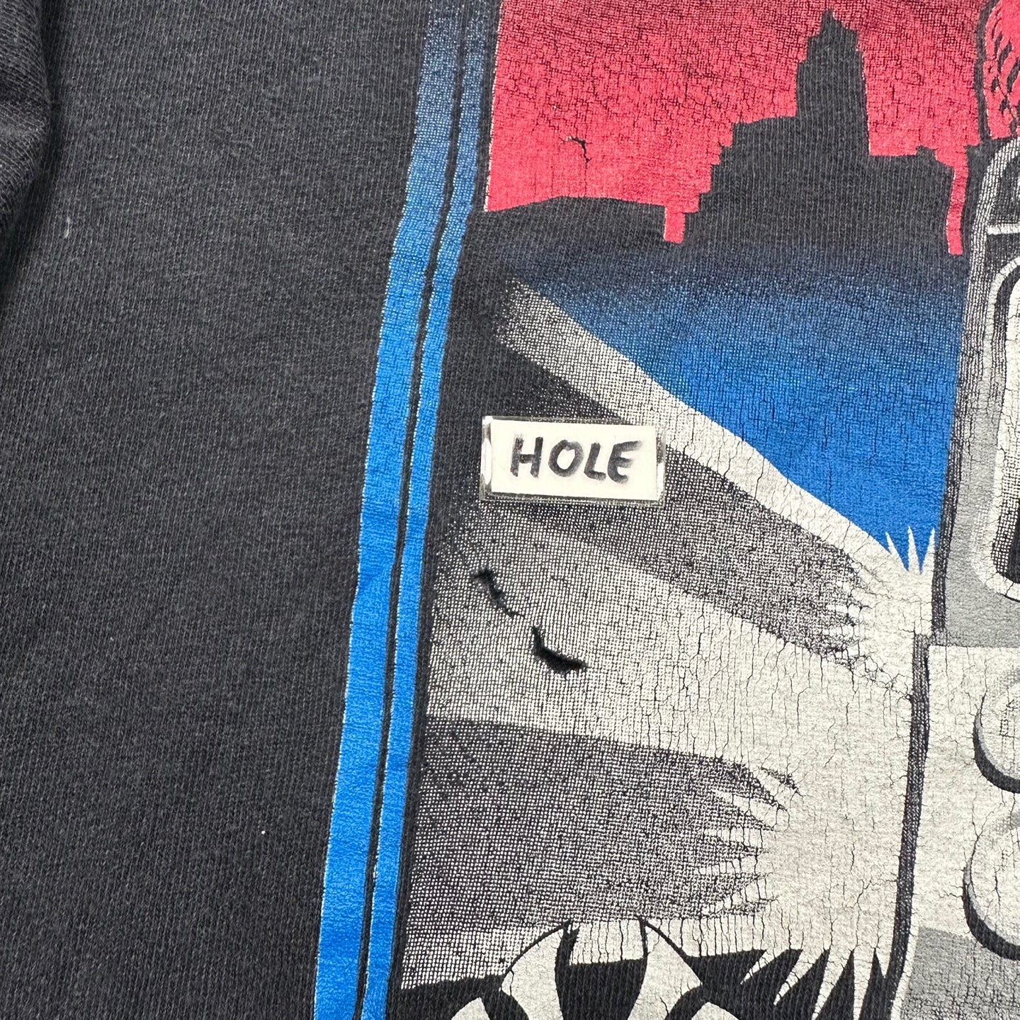 Used - Faded tag. Cracking and fading on front graphic. Fading on back. Hole on lower back and middle front.