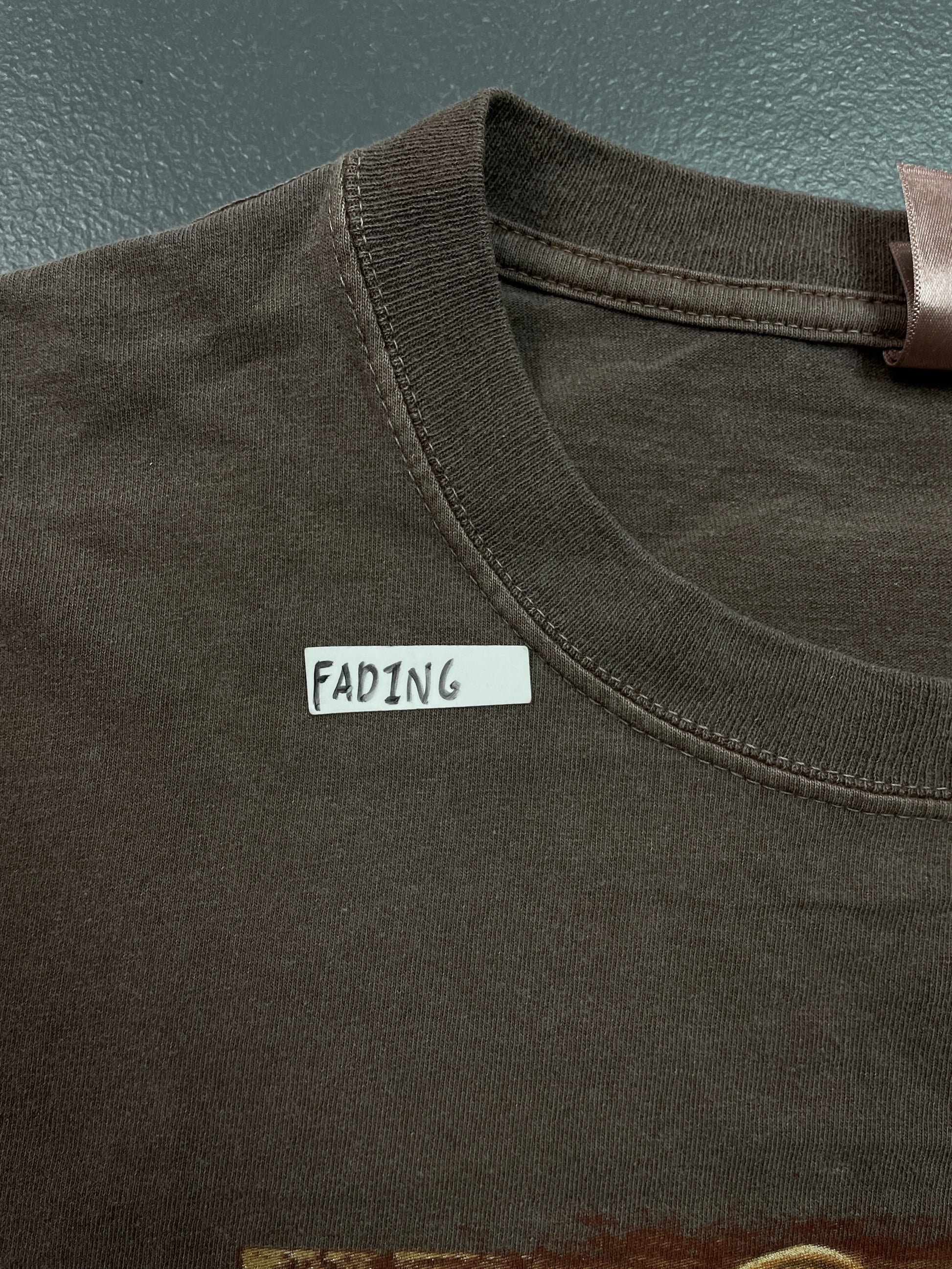 Used - Overall fading. Fading around collar. 2 small stains on front, right of graphic. Please refer to photos.