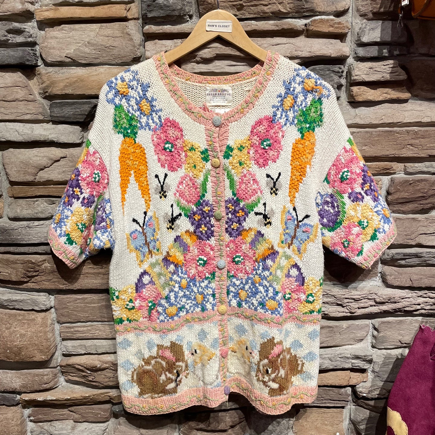 VINTAGE SUSAN BRISTOL EASTER THEMED HAND EMBROIDERED SHORT SLEEVE SWEATER