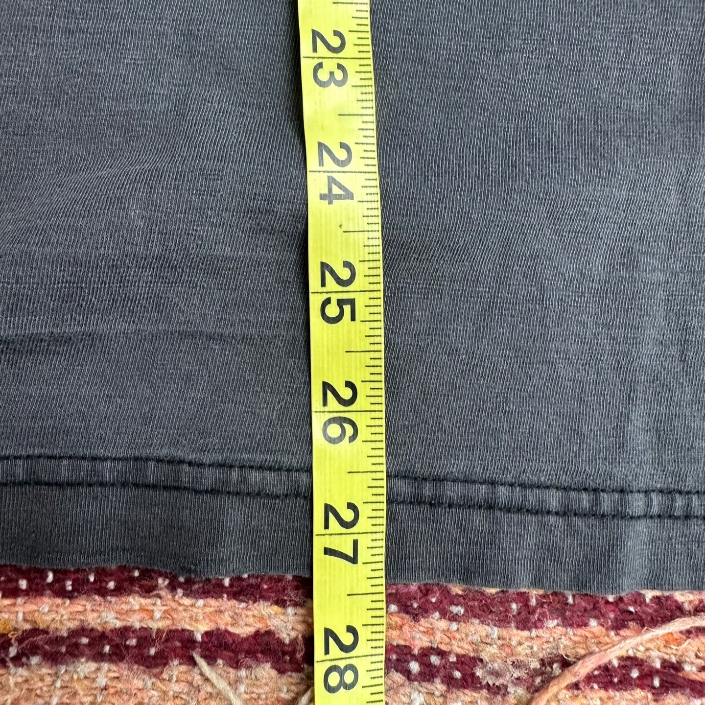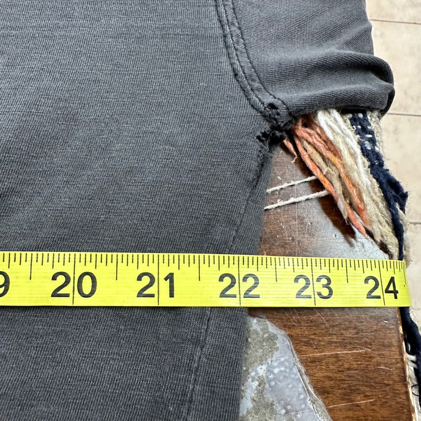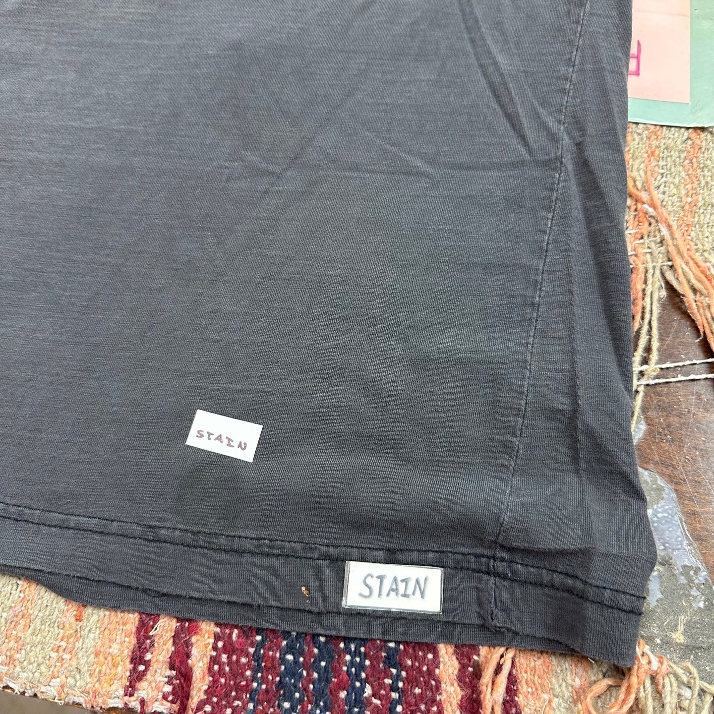 Used - Wear and tear around collar area and bottom hem. Fading on front and back graphic. Cracking on front and back graphic. Hole on underarms and lower left back. Loose threads on bottom hem. Stains on back right bottom hem. Missing tag.